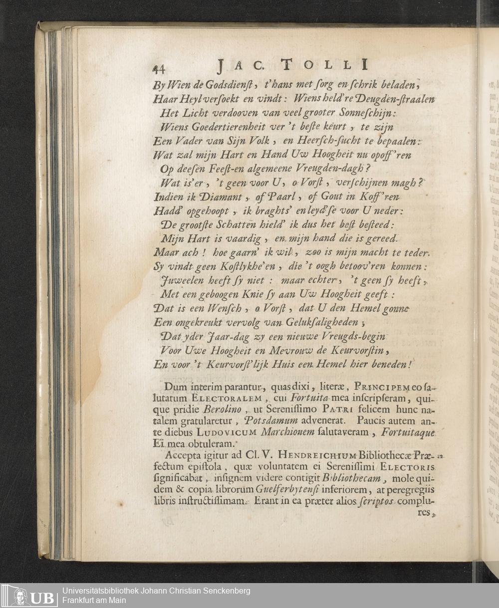 Jacobi Tollii Epistolae Itinerariae / ex Auctoris Schedis Postumis Recensitae, Suppletae, Digestae; Annotationibus, Observationibus & Figuris adornatae, cura & studio Henrici Christiani Henninii