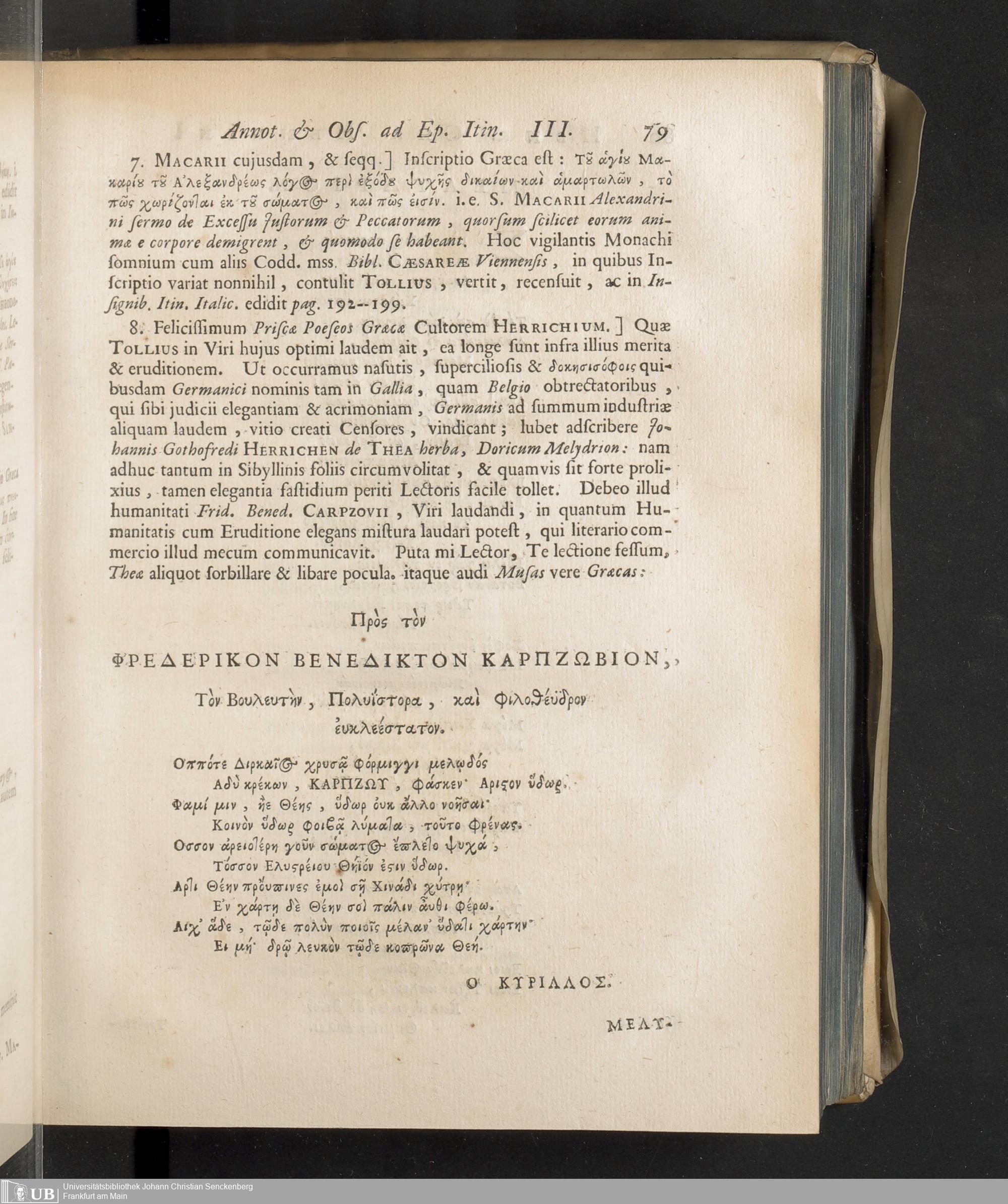 Jacobi Tollii Epistolae Itinerariae / ex Auctoris Schedis Postumis Recensitae, Suppletae, Digestae; Annotationibus, Observationibus & Figuris adornatae, cura & studio Henrici Christiani Henninii