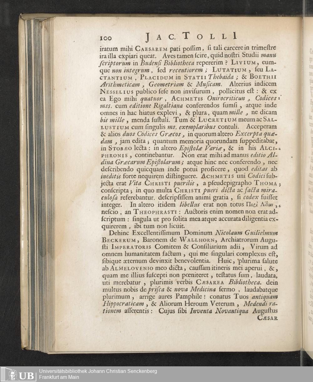 Jacobi Tollii Epistolae Itinerariae / ex Auctoris Schedis Postumis Recensitae, Suppletae, Digestae; Annotationibus, Observationibus & Figuris adornatae, cura & studio Henrici Christiani Henninii