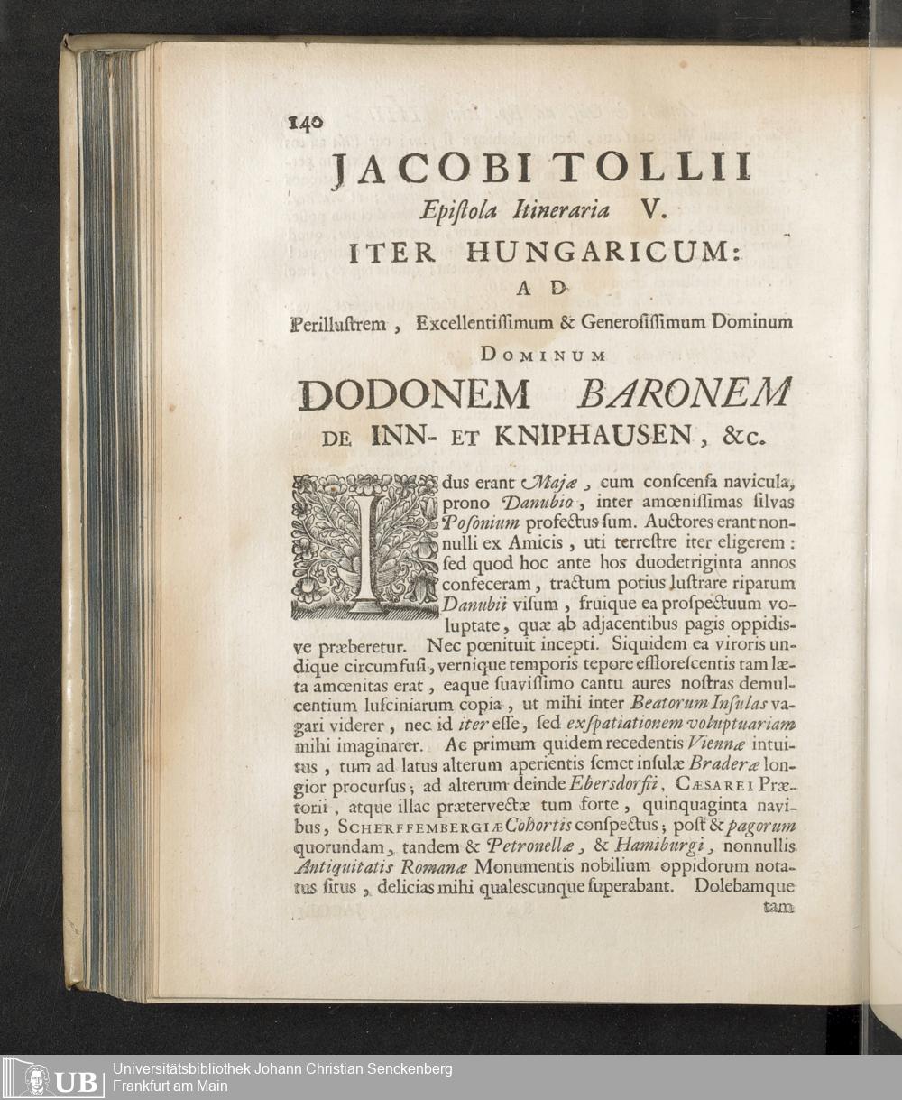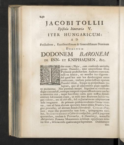Jacobi Tollii Epistolae Itinerariae / ex Auctoris Schedis Postumis Recensitae, Suppletae, Digestae; Annotationibus, Observationibus & Figuris adornatae, cura & studio Henrici Christiani Henninii