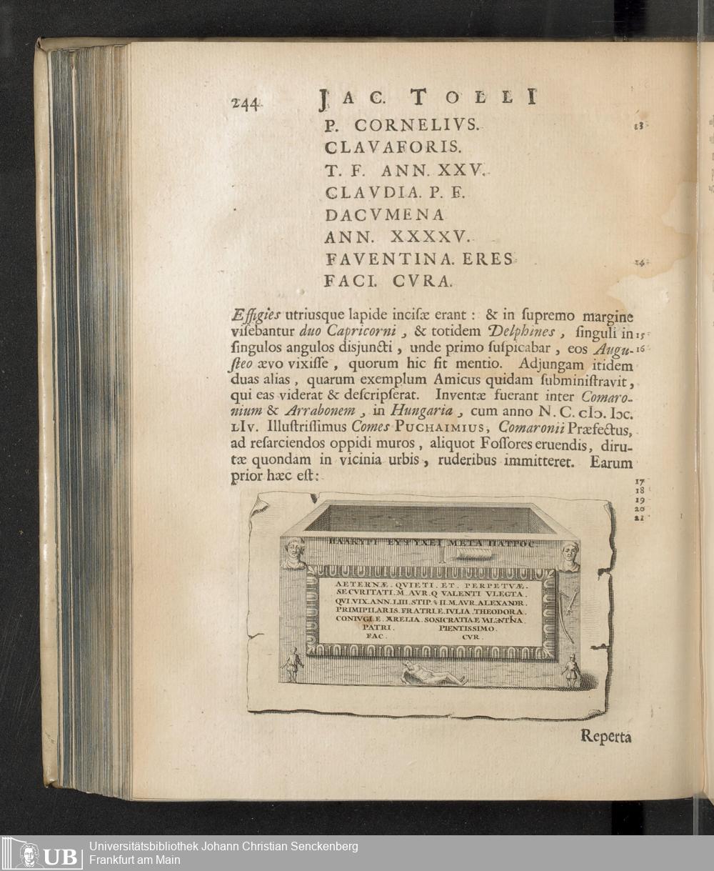 Jacobi Tollii Epistolae Itinerariae / ex Auctoris Schedis Postumis Recensitae, Suppletae, Digestae; Annotationibus, Observationibus & Figuris adornatae, cura & studio Henrici Christiani Henninii