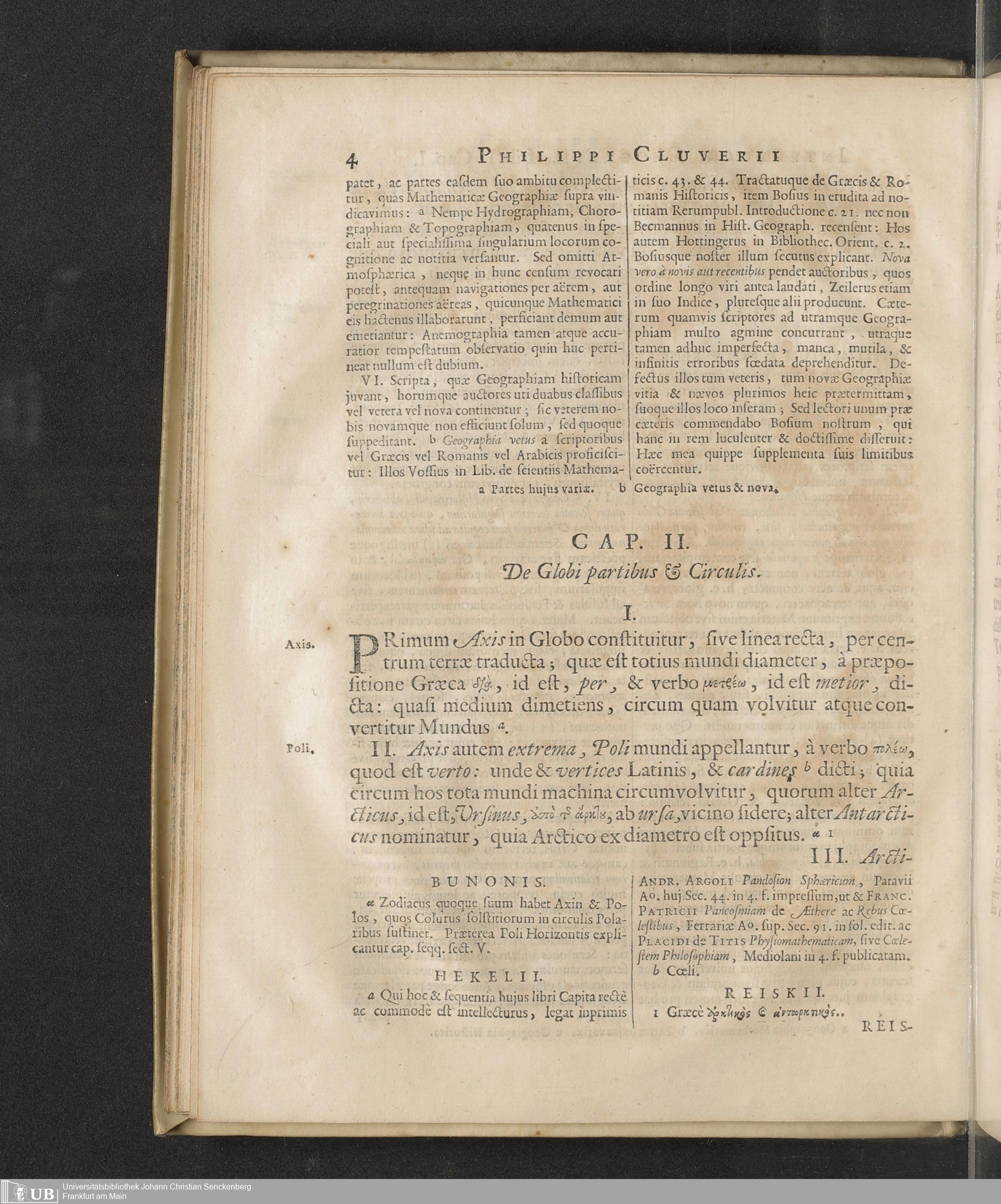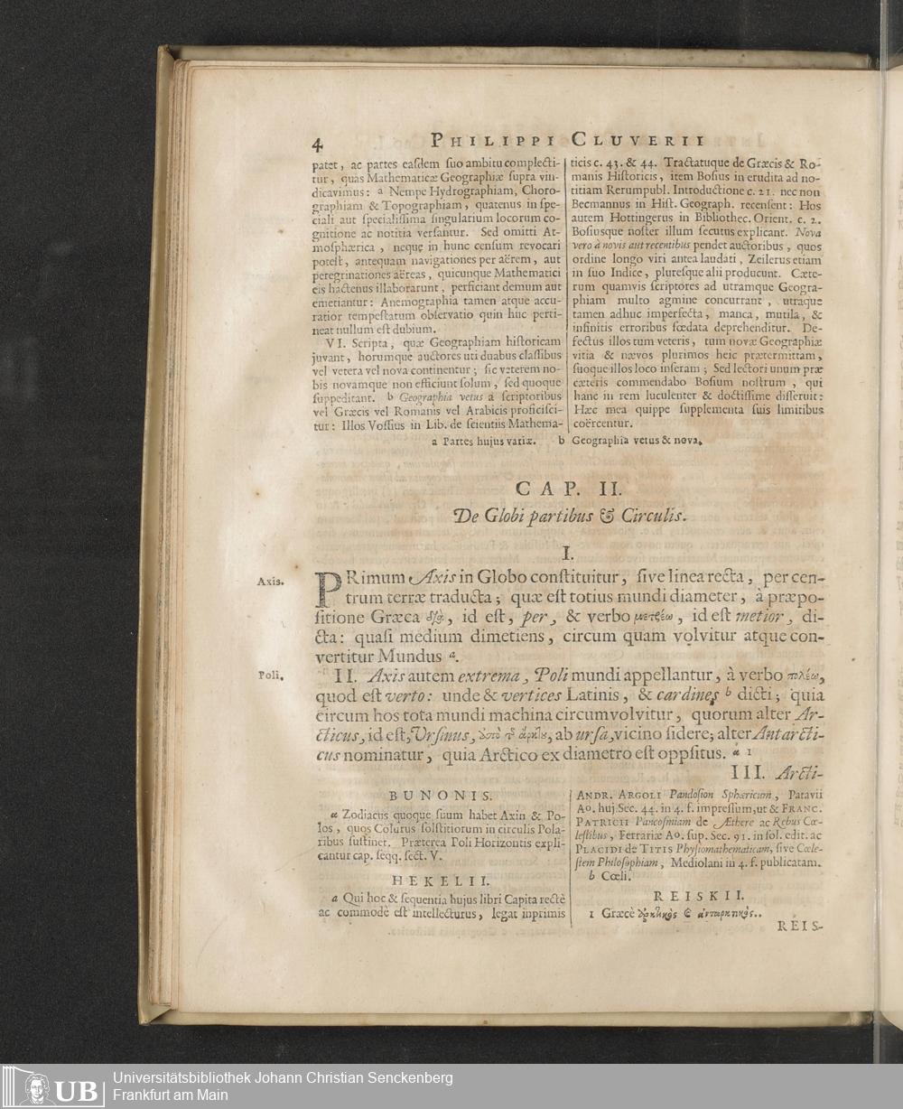 Philippi Cluverii Introductio In Universam Geographiam Tam veterem quam novam : Tabulis Geographicis XLVI. ac Notis olim ornata à Johanne Bunone, Jam verô locupletata Additamentis & Annotationibus Joh. Frid. Hekelii & Joh. Reiskii. Cum privilegio ordinum Holl. & Westfrisiæ