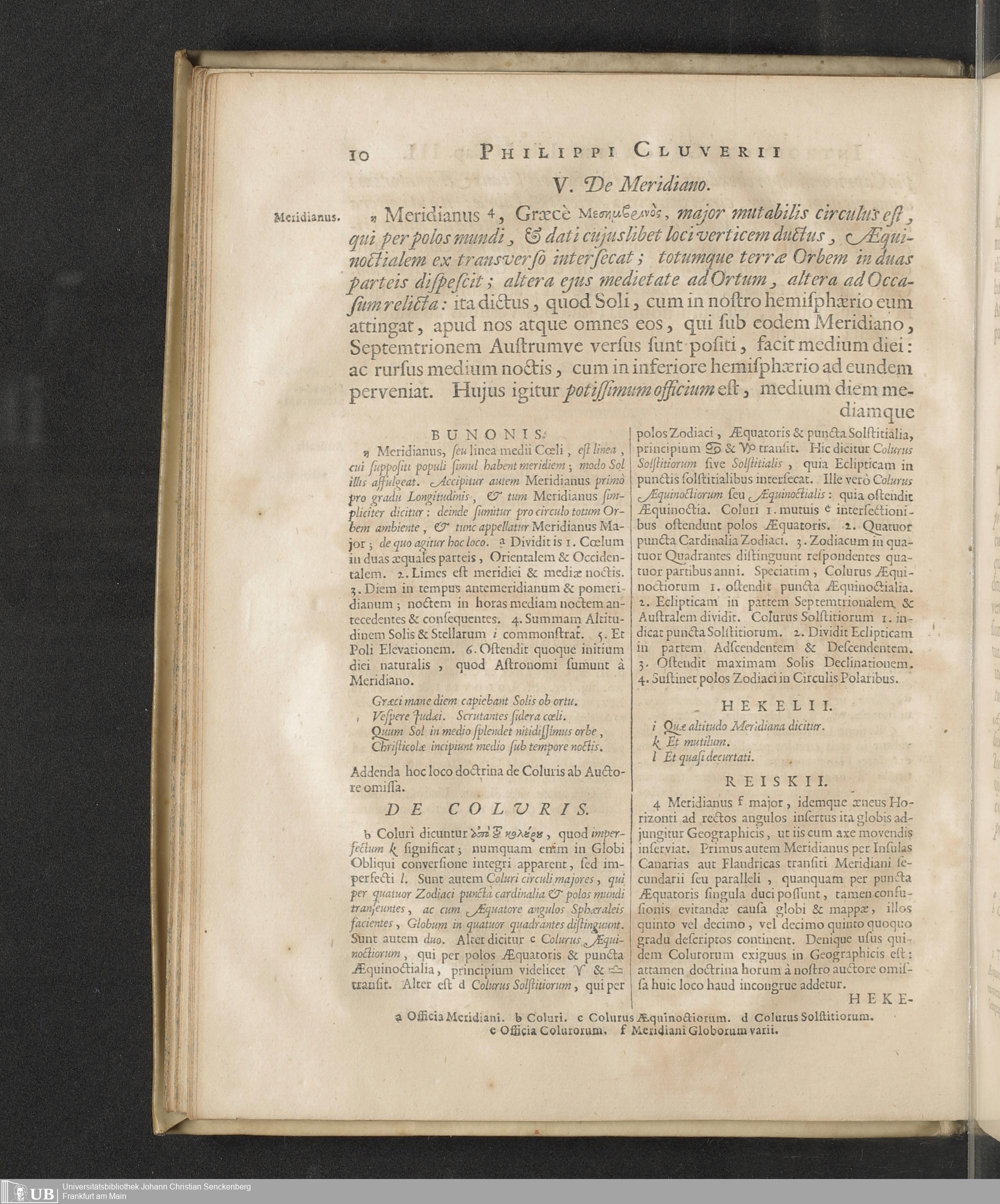 Philippi Cluverii Introductio In Universam Geographiam Tam veterem quam novam : Tabulis Geographicis XLVI. ac Notis olim ornata à Johanne Bunone, Jam verô locupletata Additamentis & Annotationibus Joh. Frid. Hekelii & Joh. Reiskii. Cum privilegio ordinum Holl. & Westfrisiæ