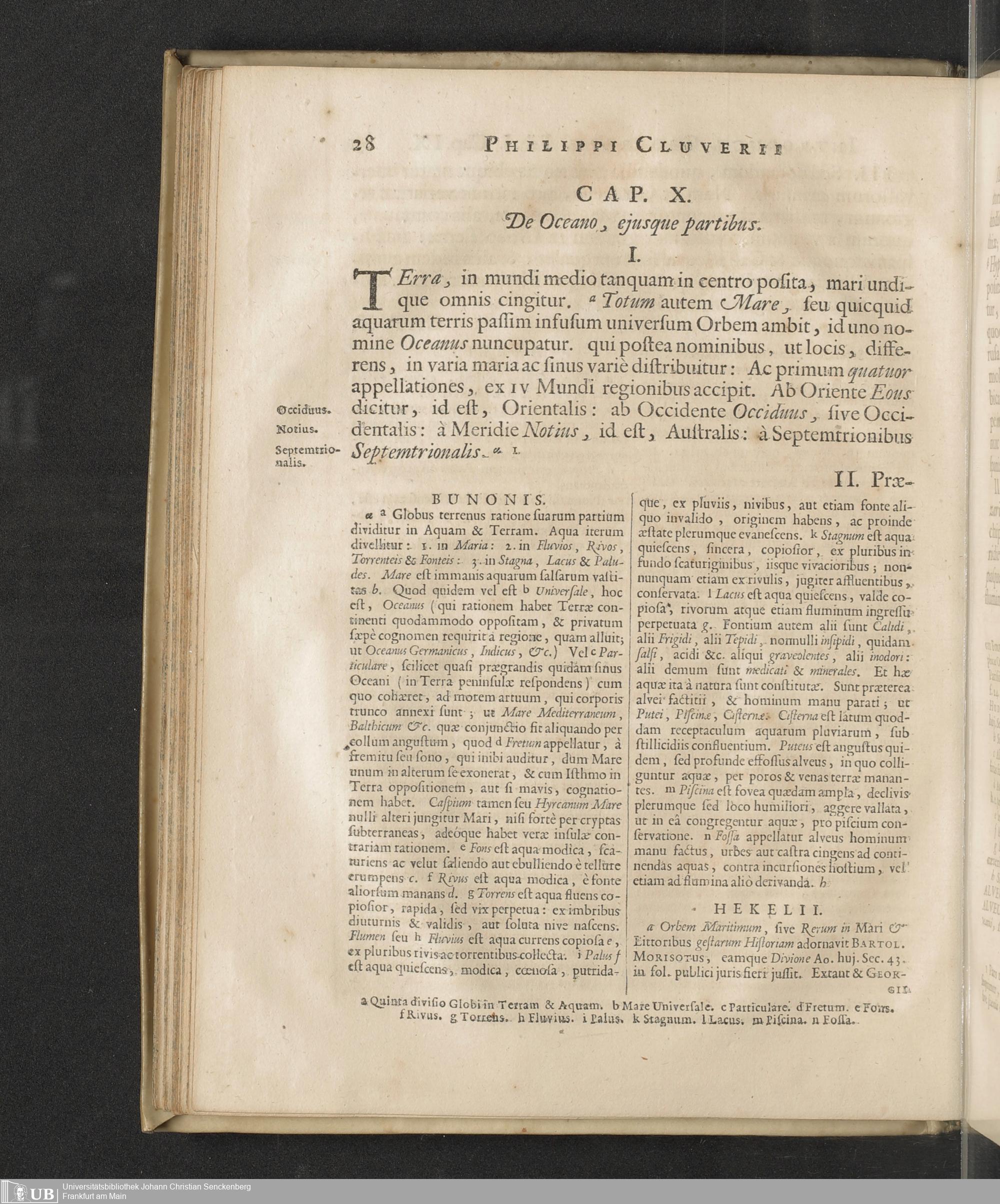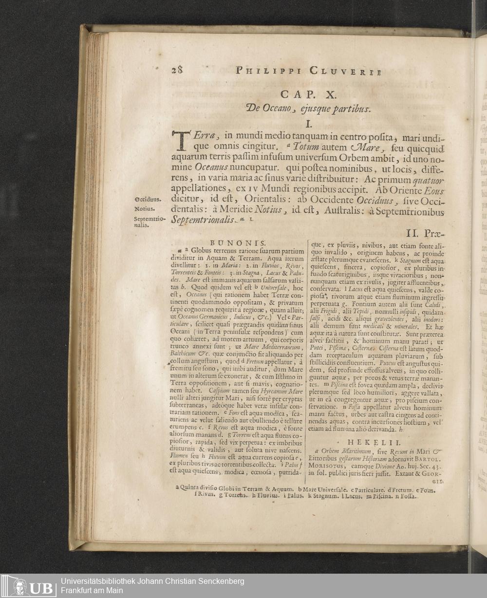 Philippi Cluverii Introductio In Universam Geographiam Tam veterem quam novam : Tabulis Geographicis XLVI. ac Notis olim ornata à Johanne Bunone, Jam verô locupletata Additamentis & Annotationibus Joh. Frid. Hekelii & Joh. Reiskii. Cum privilegio ordinum Holl. & Westfrisiæ
