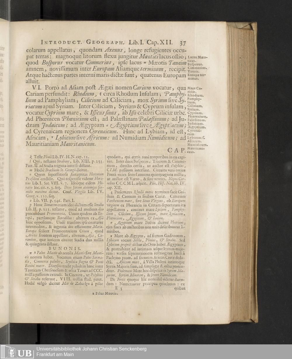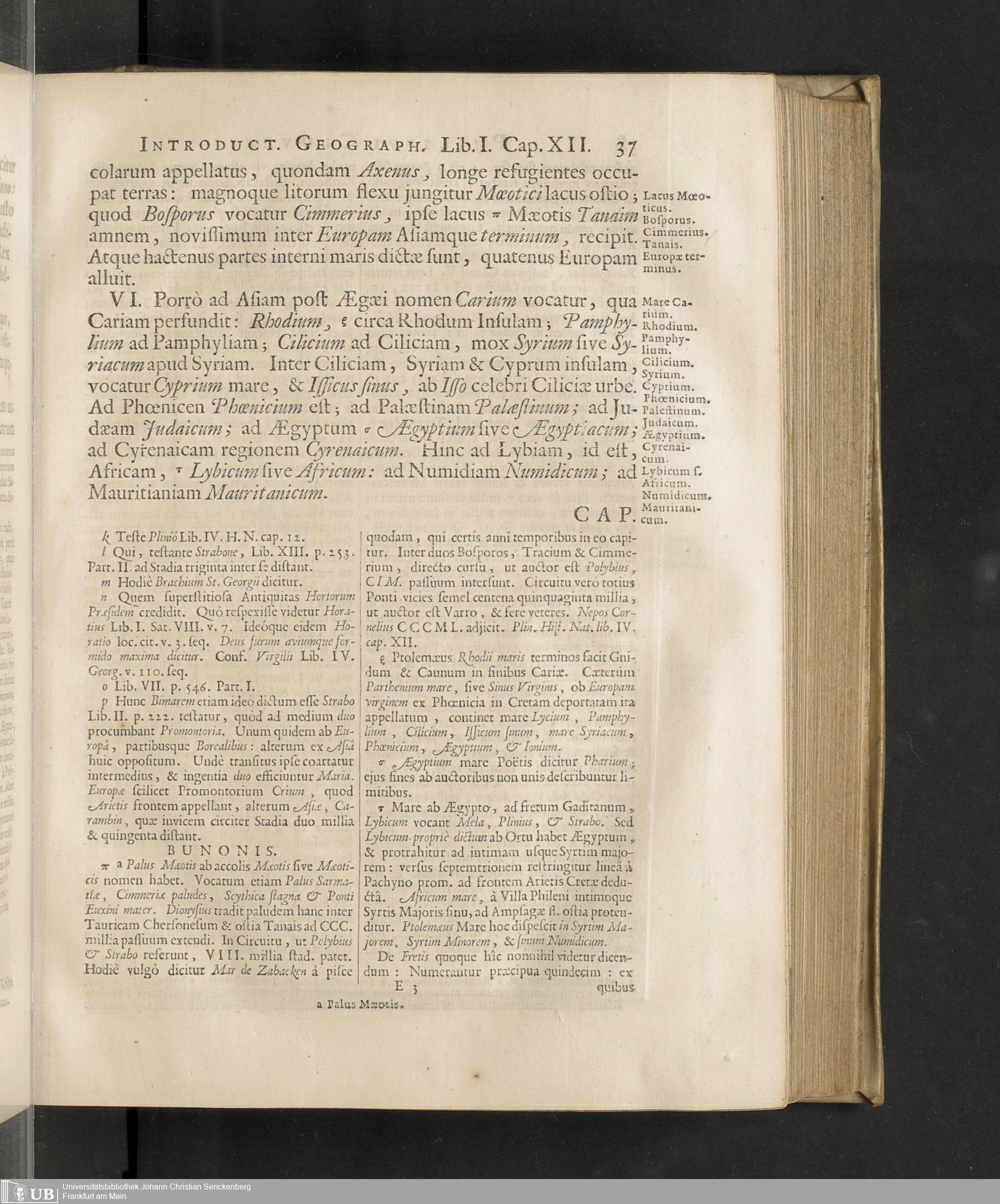 Philippi Cluverii Introductio In Universam Geographiam Tam veterem quam novam : Tabulis Geographicis XLVI. ac Notis olim ornata à Johanne Bunone, Jam verô locupletata Additamentis & Annotationibus Joh. Frid. Hekelii & Joh. Reiskii. Cum privilegio ordinum Holl. & Westfrisiæ