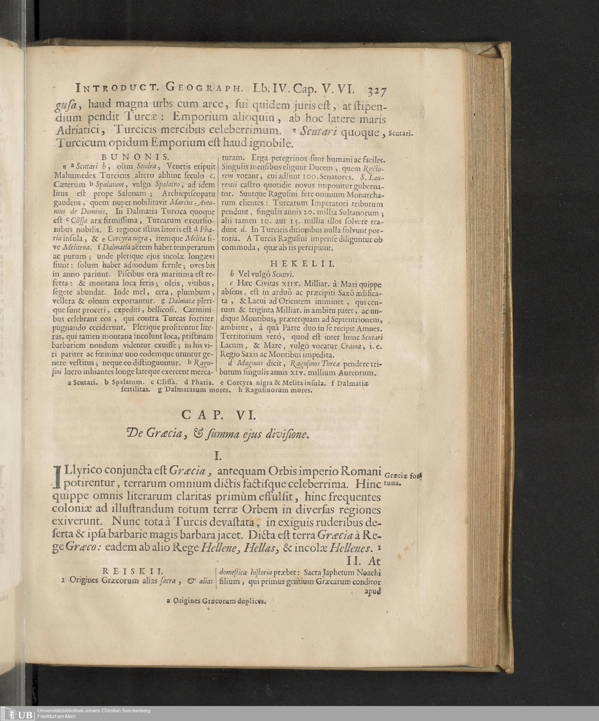 Philippi Cluverii Introductio In Universam Geographiam Tam veterem quam novam : Tabulis Geographicis XLVI. ac Notis olim ornata à Johanne Bunone, Jam verô locupletata Additamentis & Annotationibus Joh. Frid. Hekelii & Joh. Reiskii. Cum privilegio ordinum Holl. & Westfrisiæ