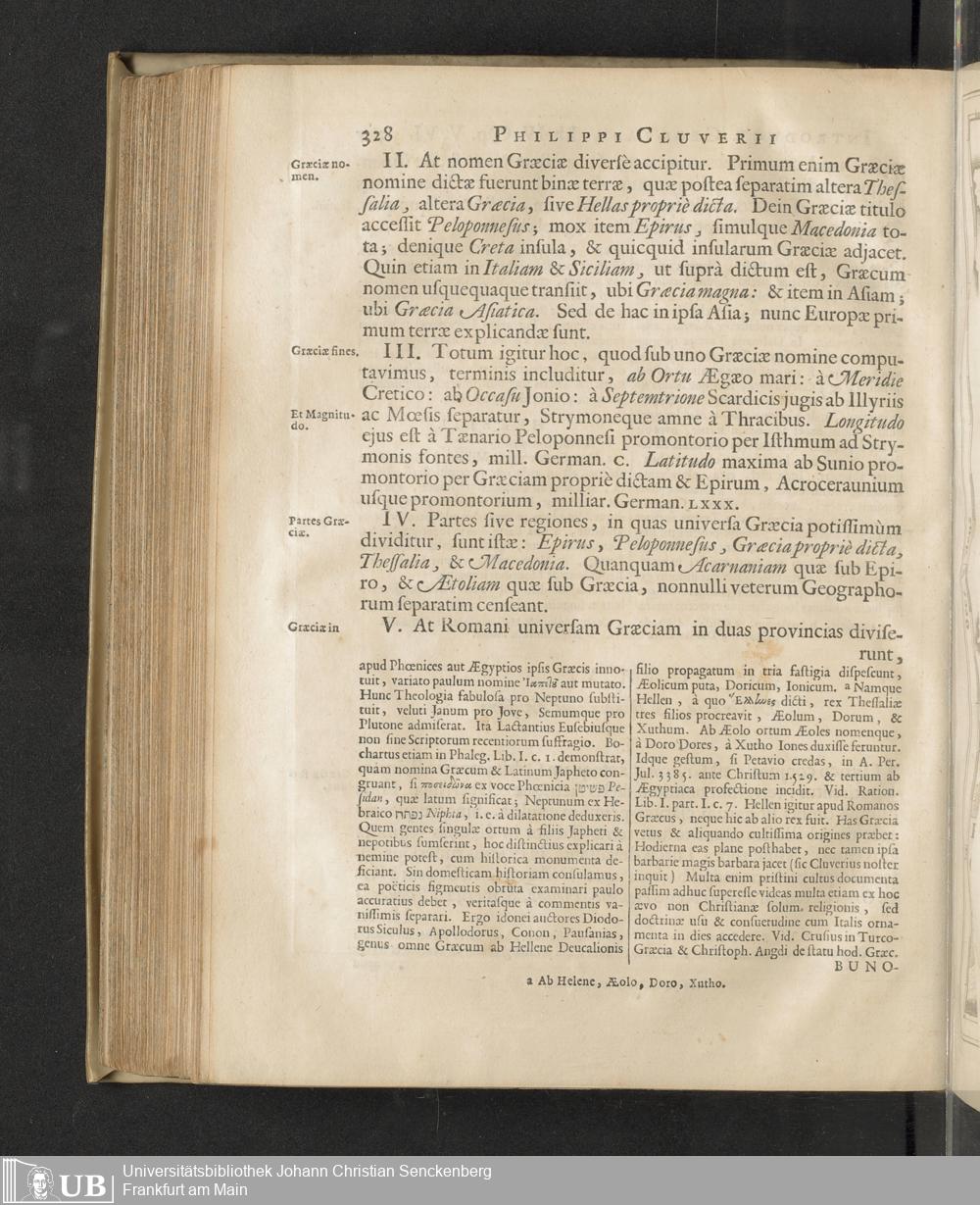 Philippi Cluverii Introductio In Universam Geographiam Tam veterem quam novam : Tabulis Geographicis XLVI. ac Notis olim ornata à Johanne Bunone, Jam verô locupletata Additamentis & Annotationibus Joh. Frid. Hekelii & Joh. Reiskii. Cum privilegio ordinum Holl. & Westfrisiæ
