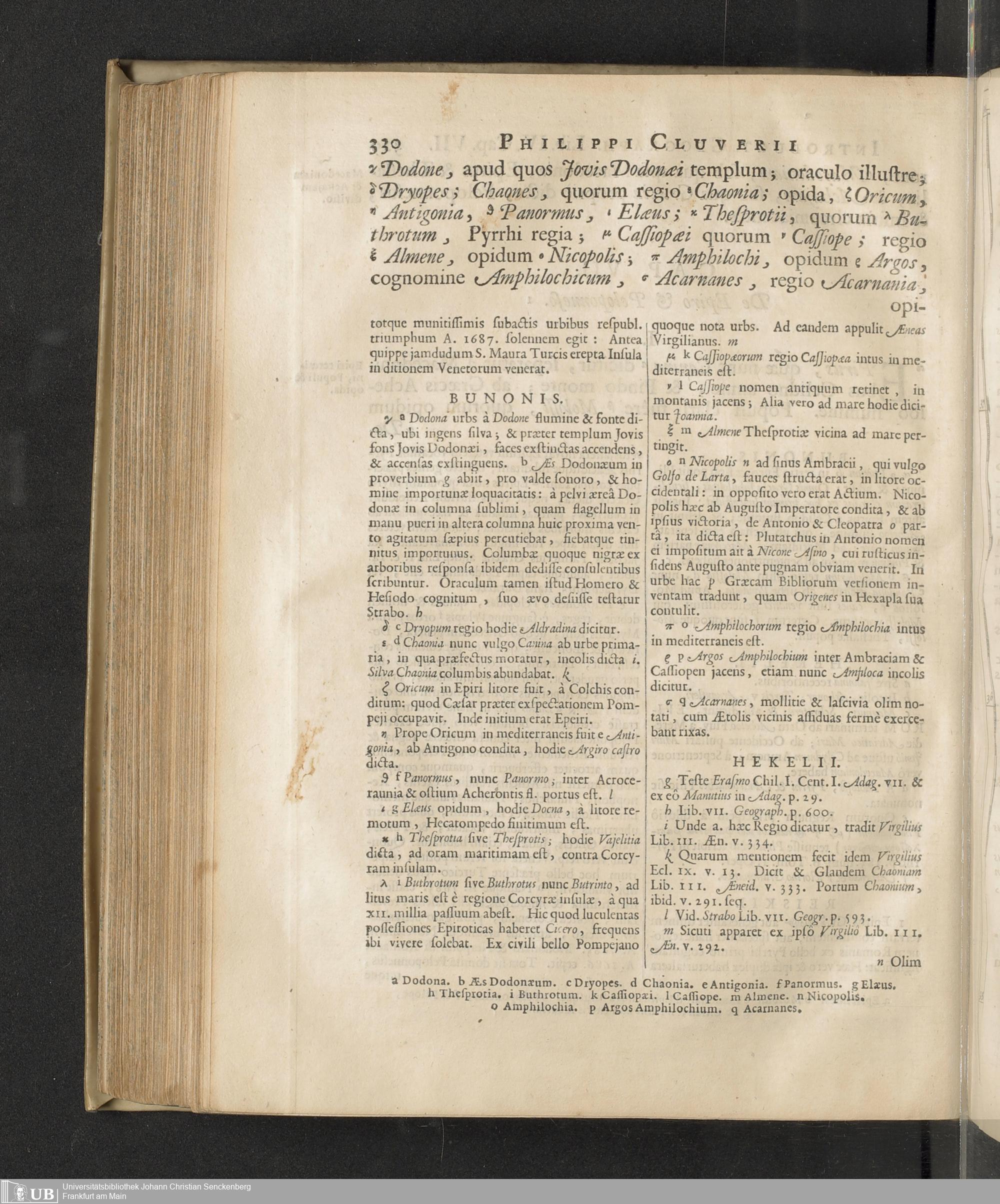 Philippi Cluverii Introductio In Universam Geographiam Tam veterem quam novam : Tabulis Geographicis XLVI. ac Notis olim ornata à Johanne Bunone, Jam verô locupletata Additamentis & Annotationibus Joh. Frid. Hekelii & Joh. Reiskii. Cum privilegio ordinum Holl. & Westfrisiæ
