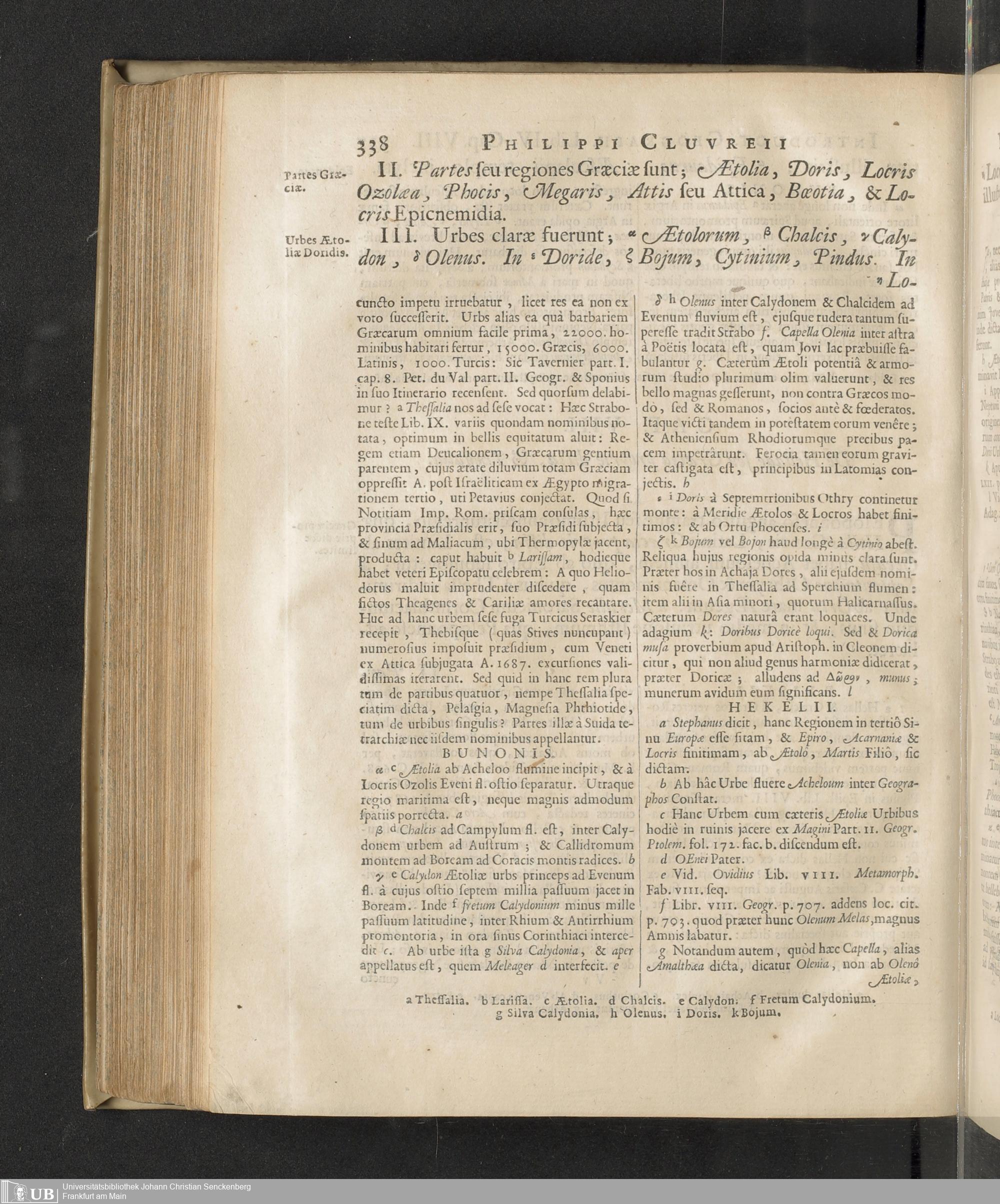 Philippi Cluverii Introductio In Universam Geographiam Tam veterem quam novam : Tabulis Geographicis XLVI. ac Notis olim ornata à Johanne Bunone, Jam verô locupletata Additamentis & Annotationibus Joh. Frid. Hekelii & Joh. Reiskii. Cum privilegio ordinum Holl. & Westfrisiæ