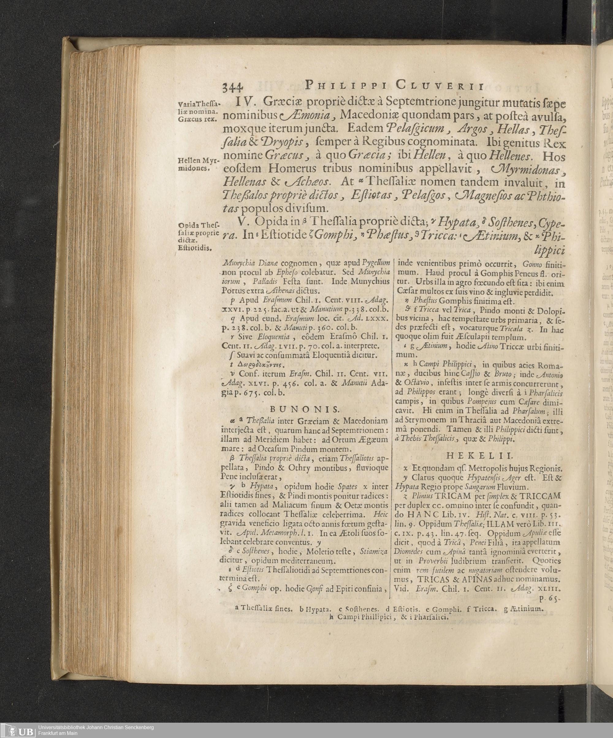 Philippi Cluverii Introductio In Universam Geographiam Tam veterem quam novam : Tabulis Geographicis XLVI. ac Notis olim ornata à Johanne Bunone, Jam verô locupletata Additamentis & Annotationibus Joh. Frid. Hekelii & Joh. Reiskii. Cum privilegio ordinum Holl. & Westfrisiæ