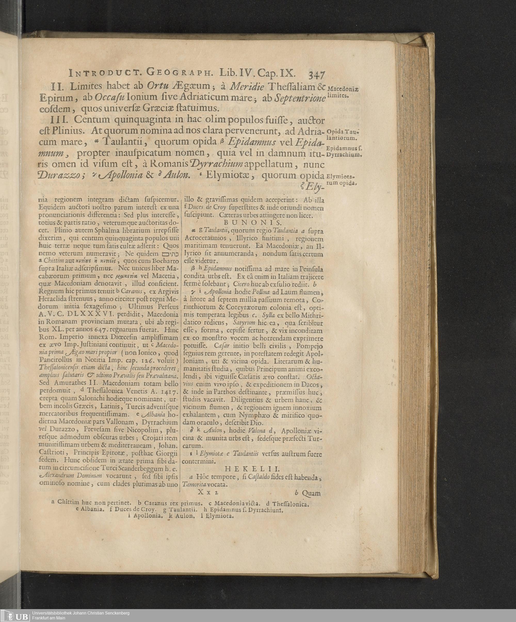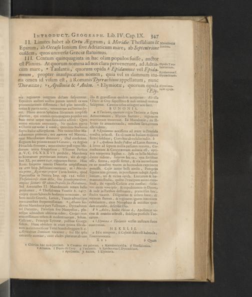 Philippi Cluverii Introductio In Universam Geographiam Tam veterem quam novam : Tabulis Geographicis XLVI. ac Notis olim ornata à Johanne Bunone, Jam verô locupletata Additamentis & Annotationibus Joh. Frid. Hekelii & Joh. Reiskii. Cum privilegio ordinum Holl. & Westfrisiæ