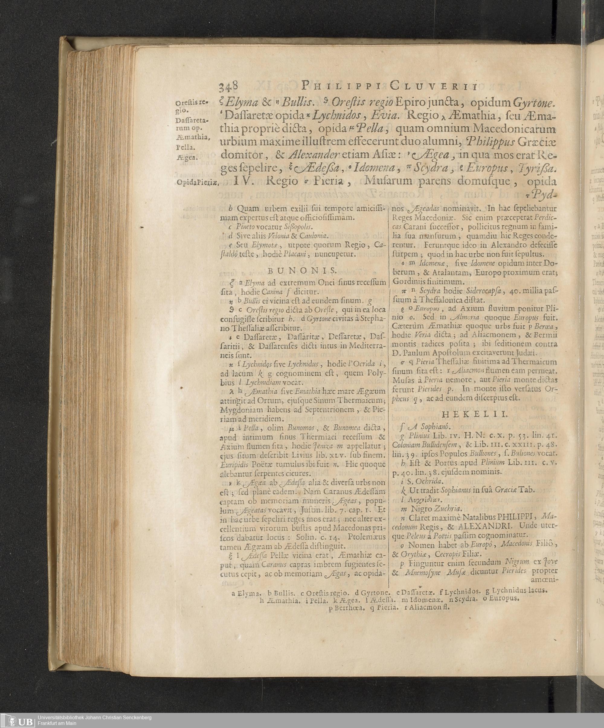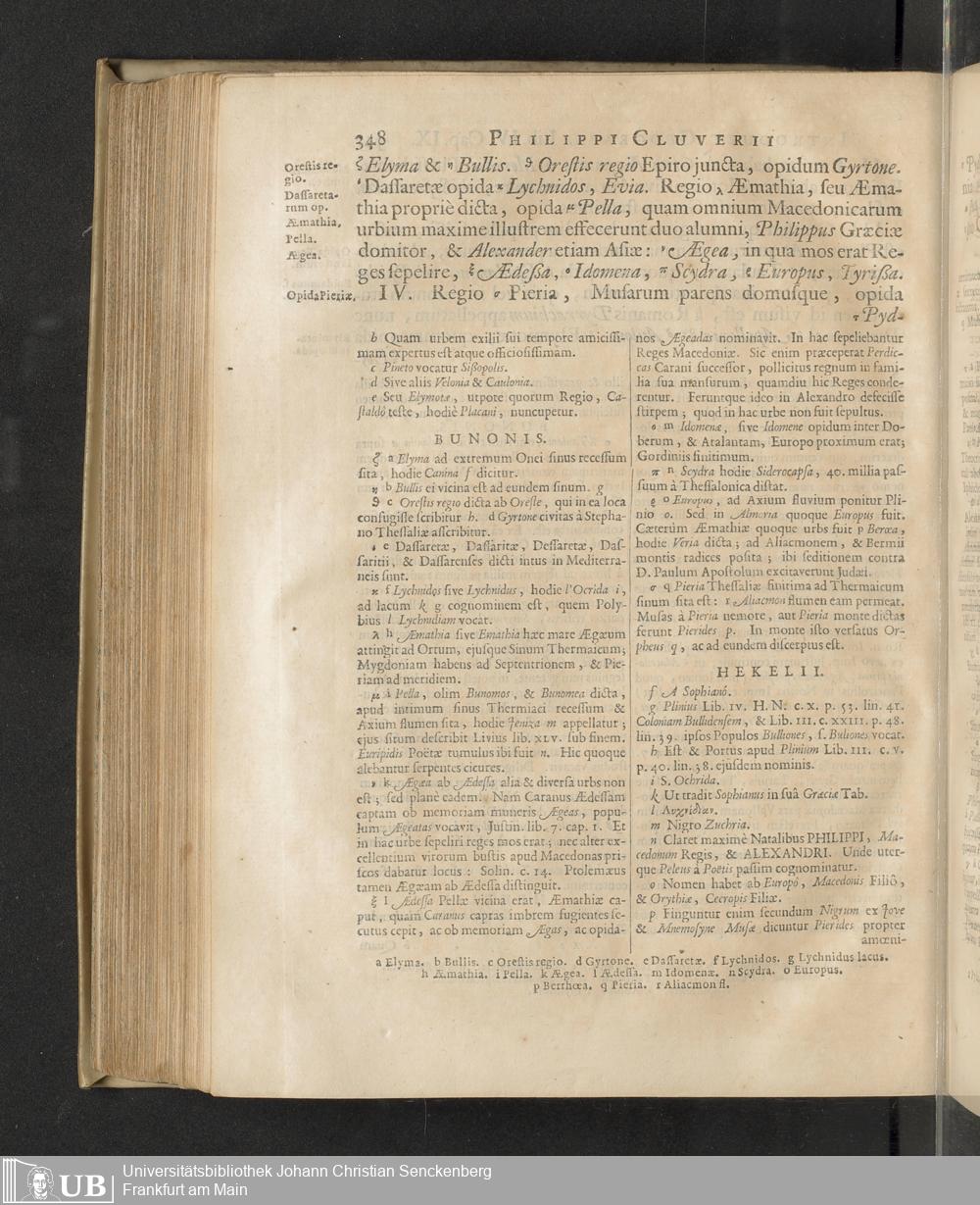 Philippi Cluverii Introductio In Universam Geographiam Tam veterem quam novam : Tabulis Geographicis XLVI. ac Notis olim ornata à Johanne Bunone, Jam verô locupletata Additamentis & Annotationibus Joh. Frid. Hekelii & Joh. Reiskii. Cum privilegio ordinum Holl. & Westfrisiæ