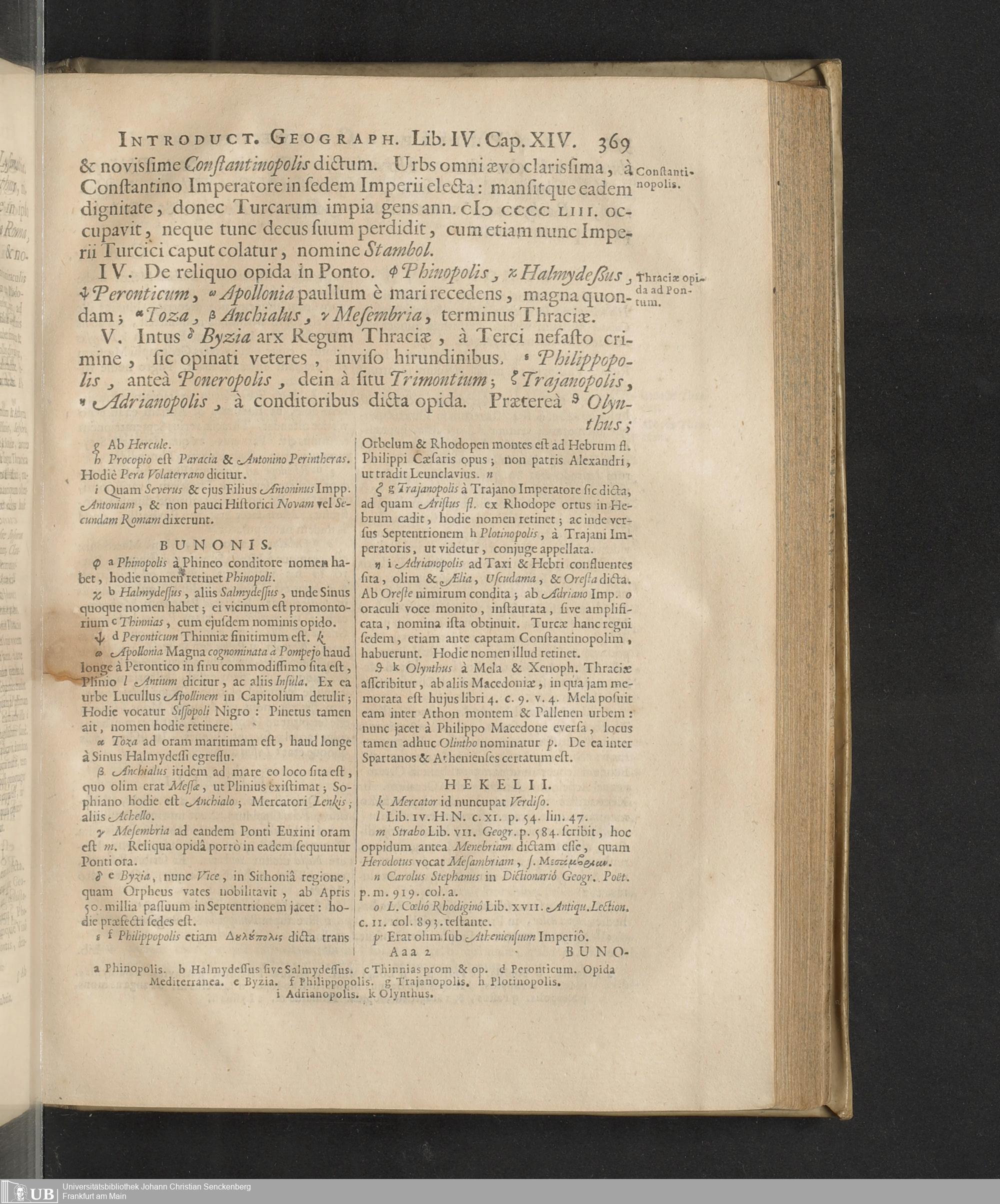 Philippi Cluverii Introductio In Universam Geographiam Tam veterem quam novam : Tabulis Geographicis XLVI. ac Notis olim ornata à Johanne Bunone, Jam verô locupletata Additamentis & Annotationibus Joh. Frid. Hekelii & Joh. Reiskii. Cum privilegio ordinum Holl. & Westfrisiæ