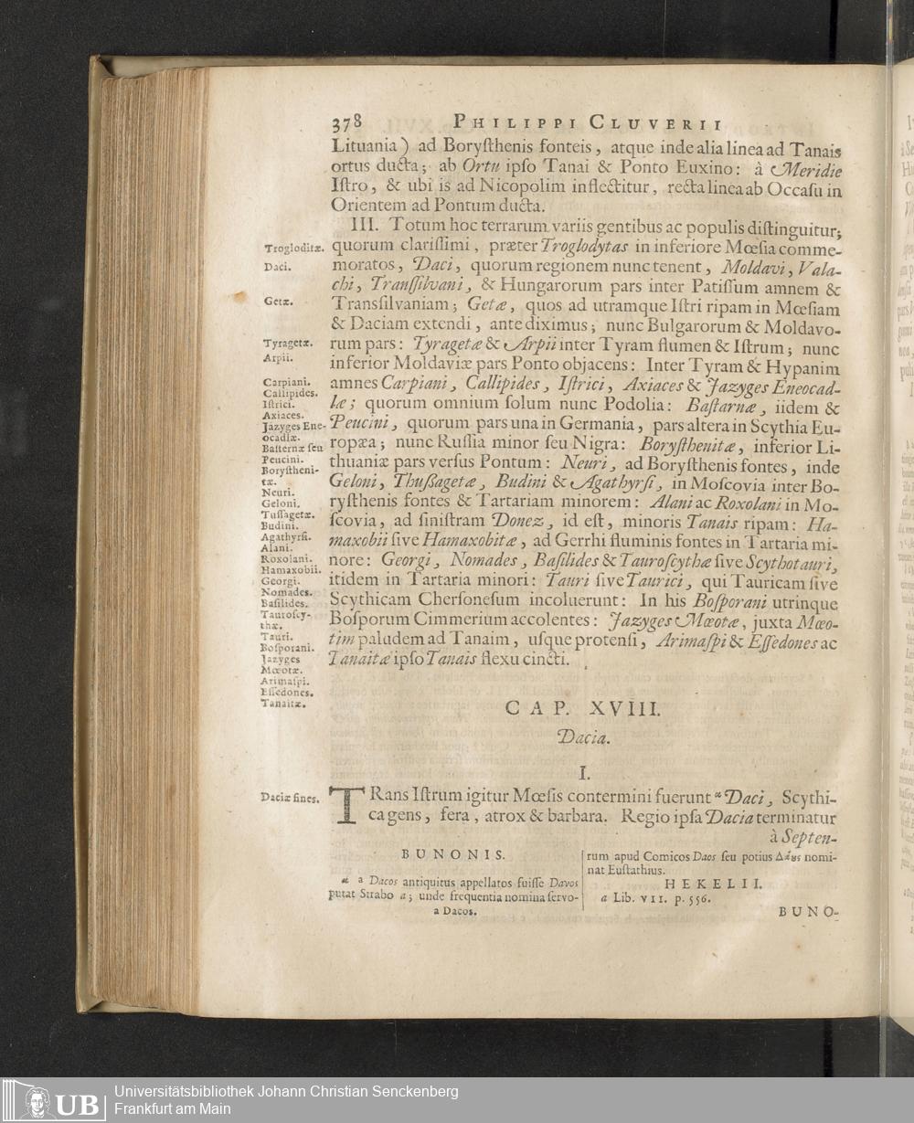 Philippi Cluverii Introductio In Universam Geographiam Tam veterem quam novam : Tabulis Geographicis XLVI. ac Notis olim ornata à Johanne Bunone, Jam verô locupletata Additamentis & Annotationibus Joh. Frid. Hekelii & Joh. Reiskii. Cum privilegio ordinum Holl. & Westfrisiæ