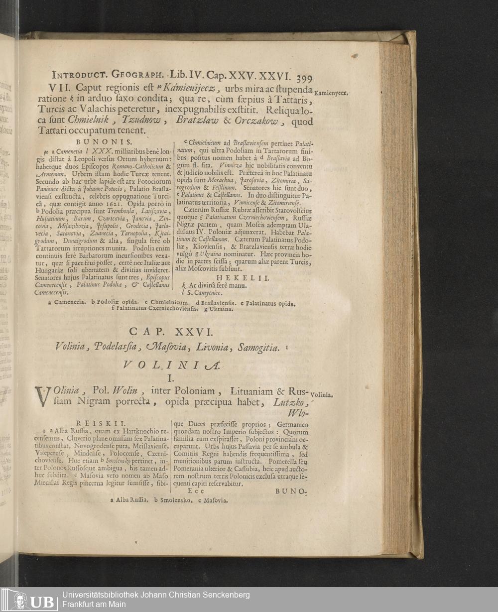 Philippi Cluverii Introductio In Universam Geographiam Tam veterem quam novam : Tabulis Geographicis XLVI. ac Notis olim ornata à Johanne Bunone, Jam verô locupletata Additamentis & Annotationibus Joh. Frid. Hekelii & Joh. Reiskii. Cum privilegio ordinum Holl. & Westfrisiæ