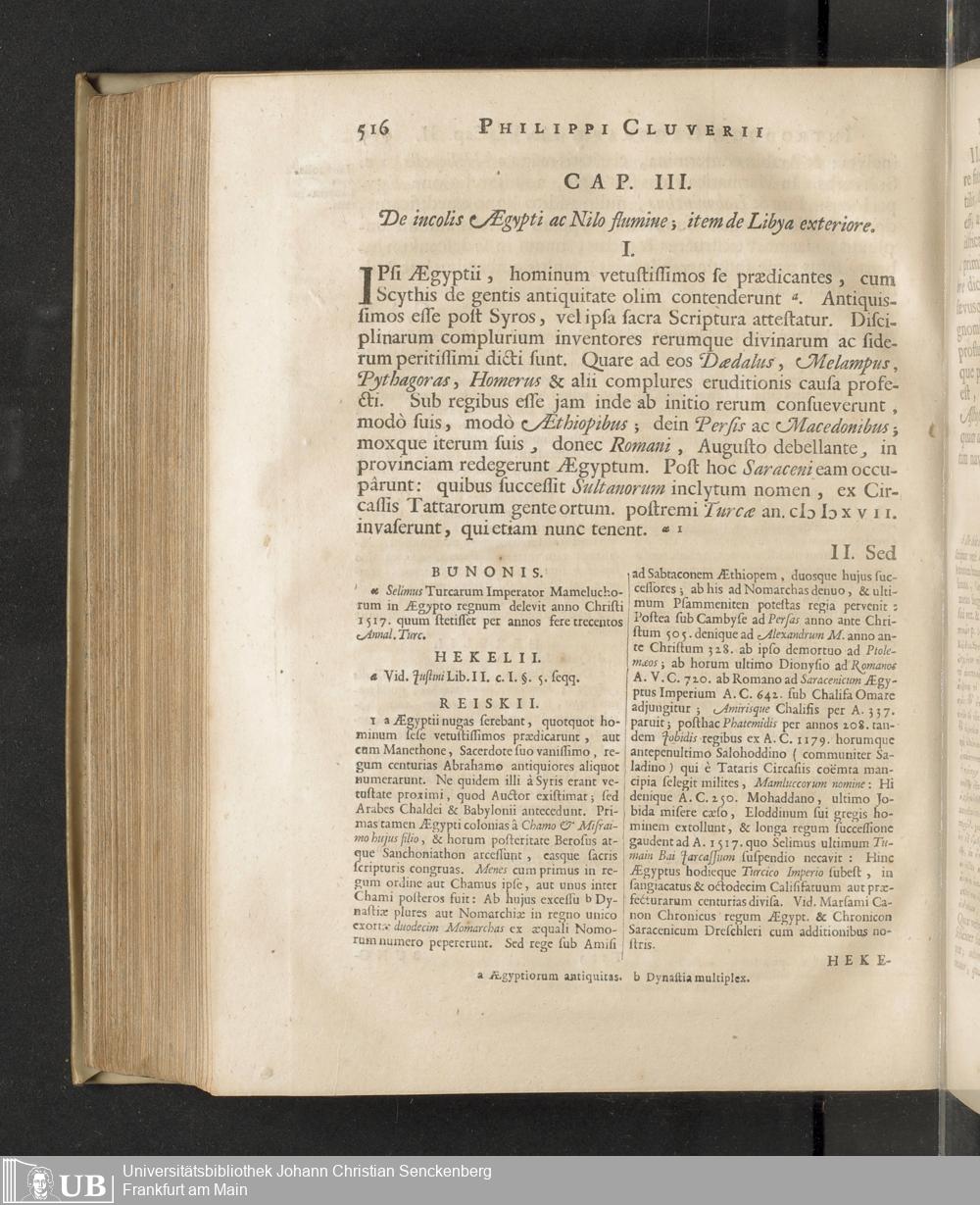 Philippi Cluverii Introductio In Universam Geographiam Tam veterem quam novam : Tabulis Geographicis XLVI. ac Notis olim ornata à Johanne Bunone, Jam verô locupletata Additamentis & Annotationibus Joh. Frid. Hekelii & Joh. Reiskii. Cum privilegio ordinum Holl. & Westfrisiæ