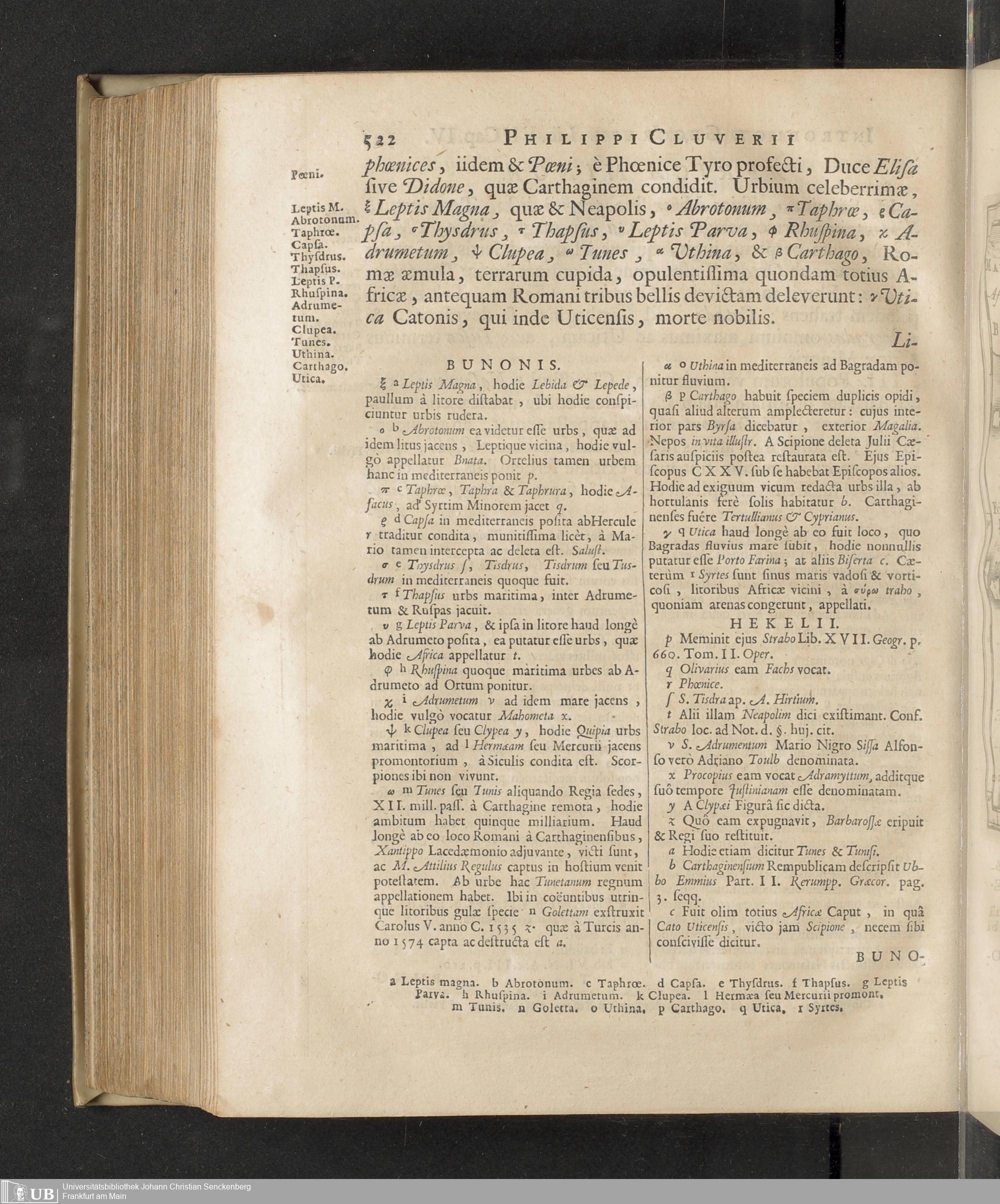 Philippi Cluverii Introductio In Universam Geographiam Tam veterem quam novam : Tabulis Geographicis XLVI. ac Notis olim ornata à Johanne Bunone, Jam verô locupletata Additamentis & Annotationibus Joh. Frid. Hekelii & Joh. Reiskii. Cum privilegio ordinum Holl. & Westfrisiæ