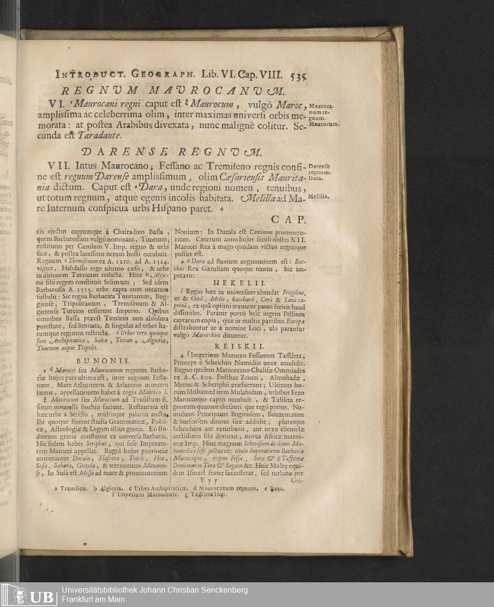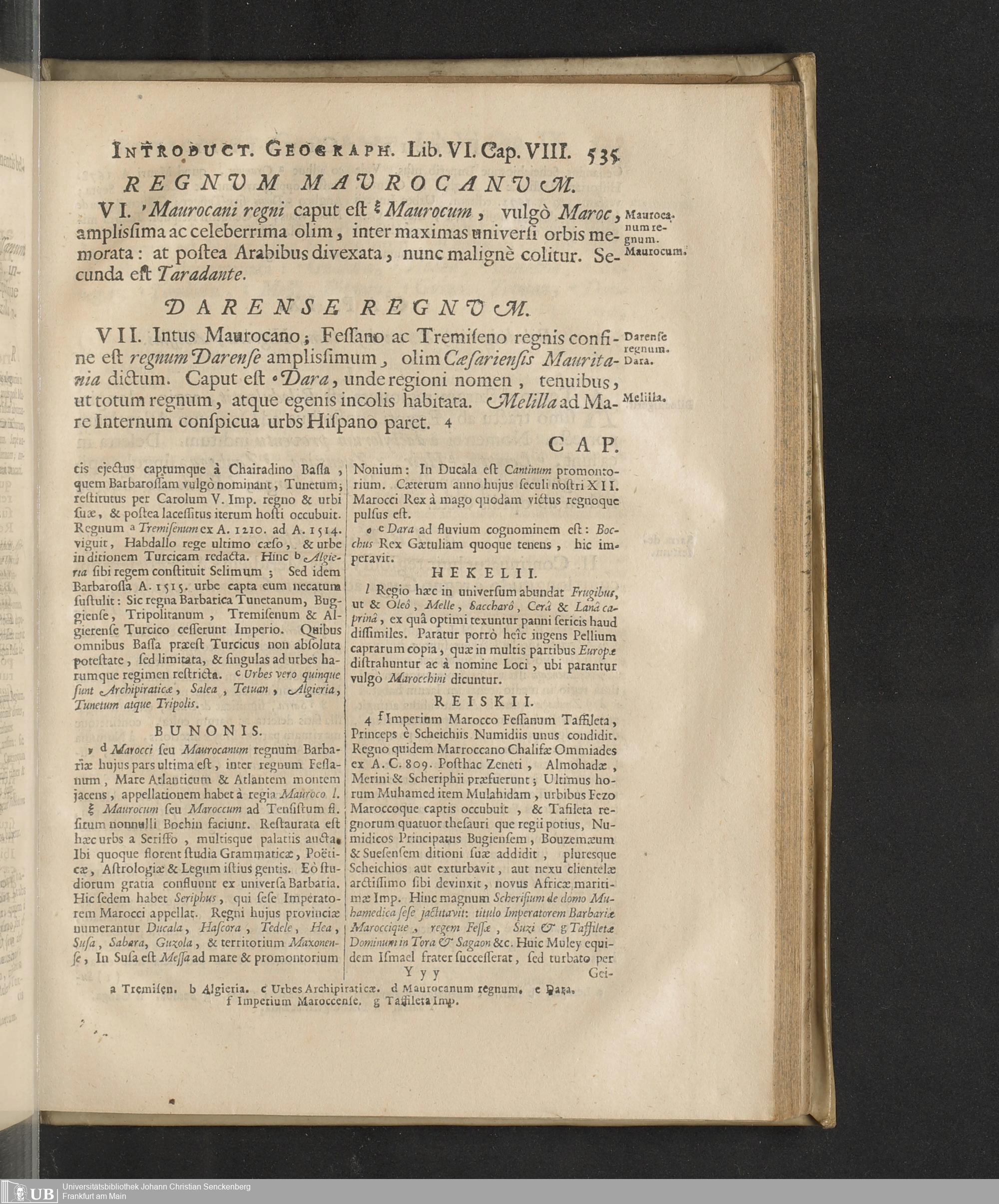 Philippi Cluverii Introductio In Universam Geographiam Tam veterem quam novam : Tabulis Geographicis XLVI. ac Notis olim ornata à Johanne Bunone, Jam verô locupletata Additamentis & Annotationibus Joh. Frid. Hekelii & Joh. Reiskii. Cum privilegio ordinum Holl. & Westfrisiæ