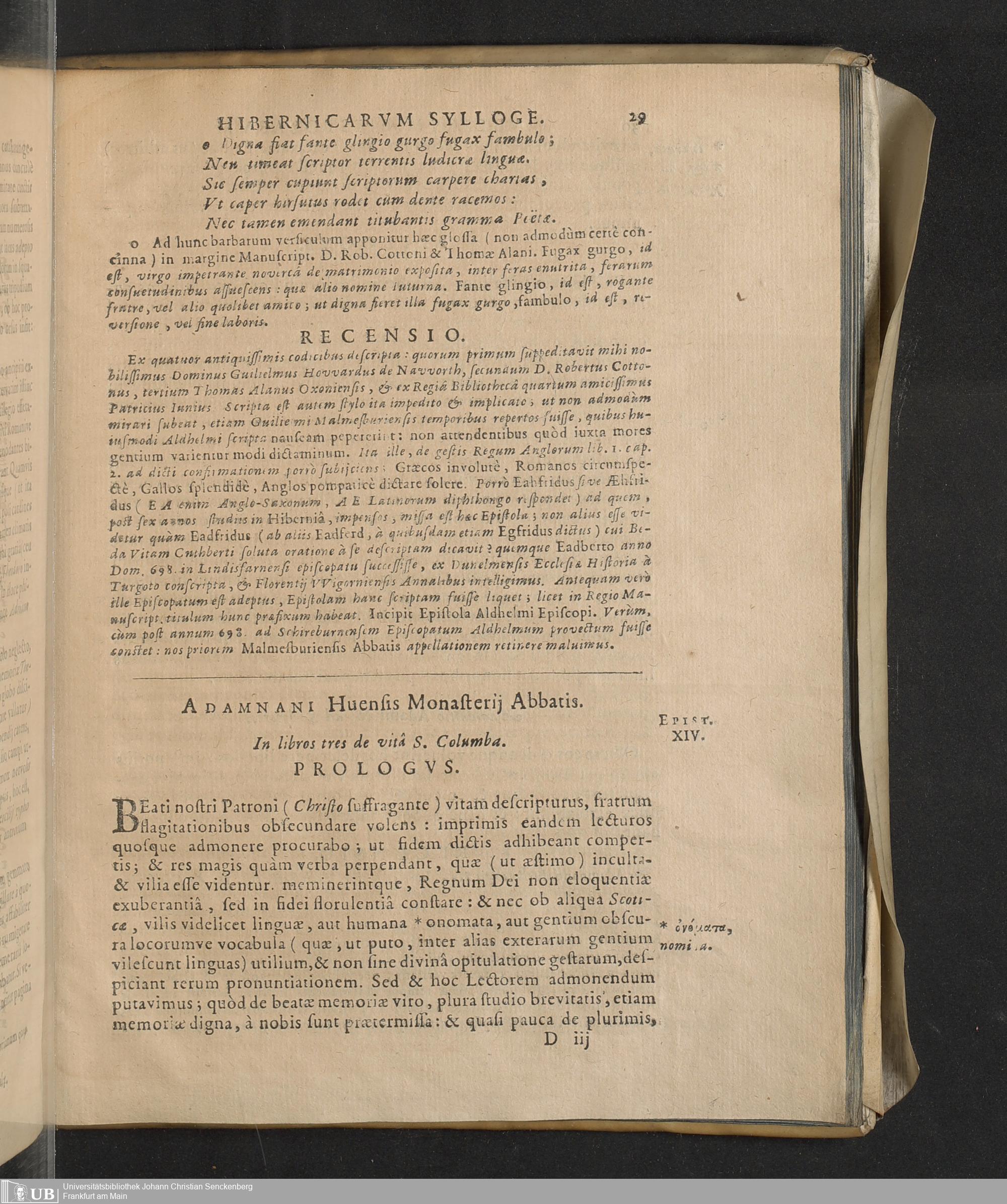 Vetervm Epistolarvm Hibernicarvm Sylloge : Quæ partim ab Hibernis, partim ad Hibernos ; partim de Hibernis vel rebus Hibernicis sunt conscriptæ [...] Epistolarum seriem proxima post præfationem pagina demonstrat / Iacobvs Vsserivs Archmachanvs Archiepiscopus Collegit & Recensuit
