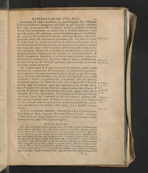 Vetervm Epistolarvm Hibernicarvm Sylloge : Quæ partim ab Hibernis, partim ad Hibernos ; partim de Hibernis vel rebus Hibernicis sunt conscriptæ [...] Epistolarum seriem proxima post præfationem pagina demonstrat / Iacobvs Vsserivs Archmachanvs Archiepiscopus Collegit & Recensuit