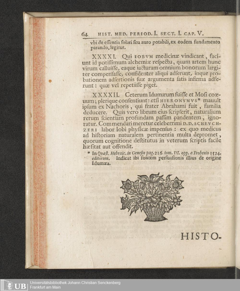 Historia Medicinae : A Rervm Initio Ad Annvm Vrbis Romae DXXXV Dedvcta / Stvdio Jo. Henrici Schvlzii Med. D. Et Professoris Pvblici Altorfini Acad. Nat. Cur. Collegae. Accedvnt Tabvlae Aeneae, Chronologica, Et Indices Copiosi