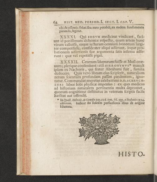 Historiae Medicinae Periodi Primae. Sectio Prima de Medicinae Prima Origine et Seorsim de Medicina aegyptiorum Pluriumque Gentium