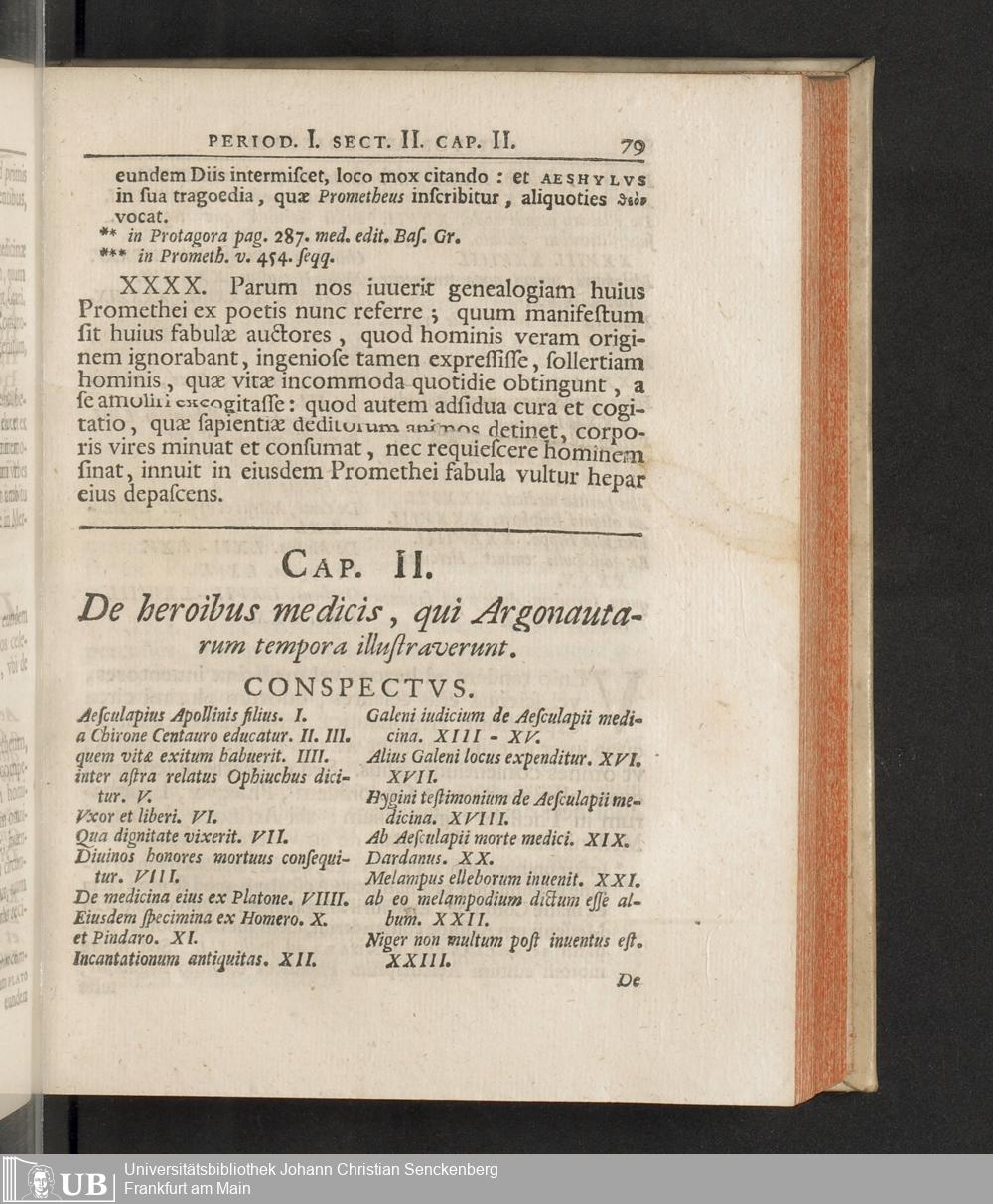 Historiae Medicinae Periodi Primae. Sectio Secunda de antiquissima Medicina graecorum usque ad Hippocratem Coum. Cum Synchronismo Aliarum Gentium.