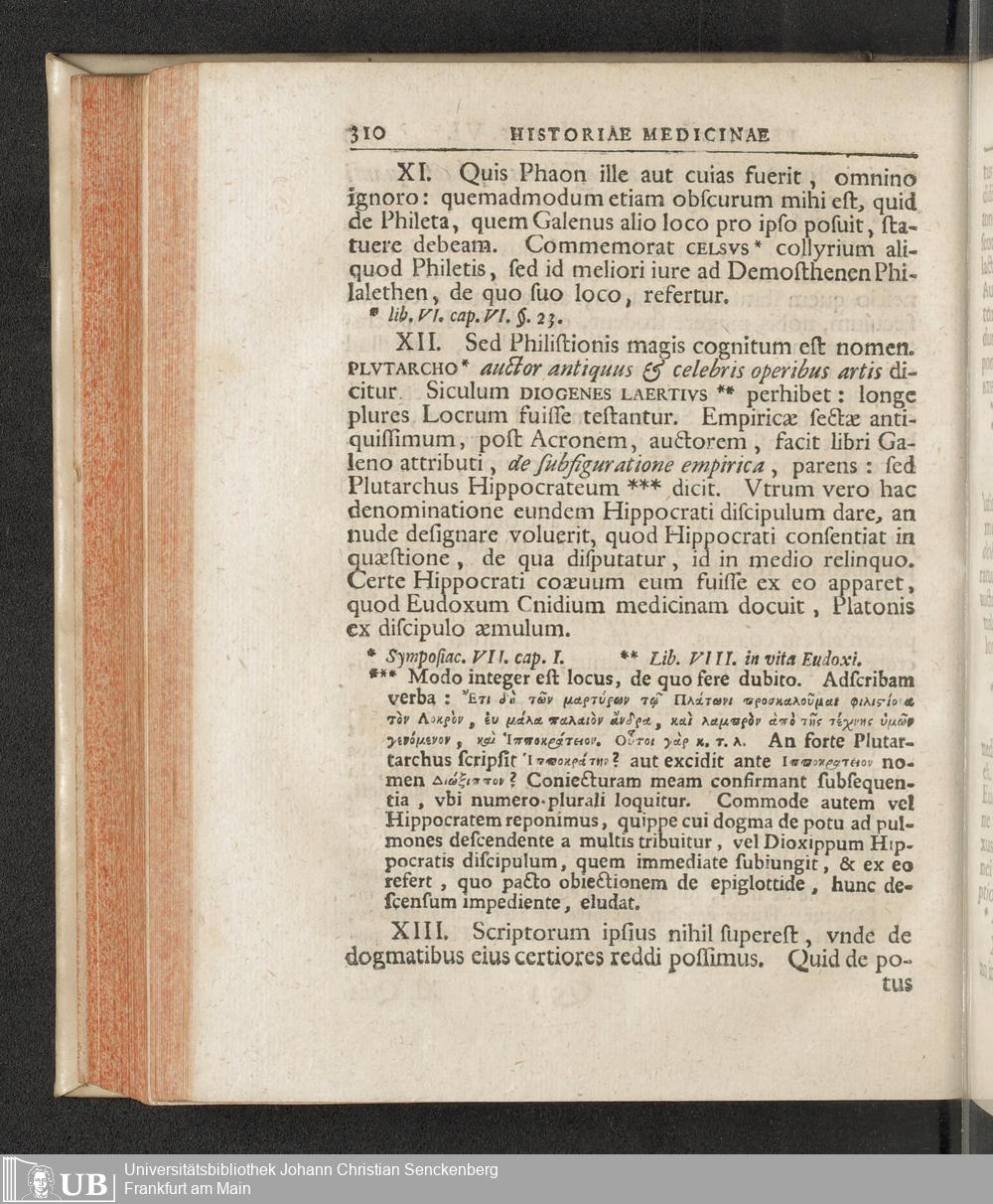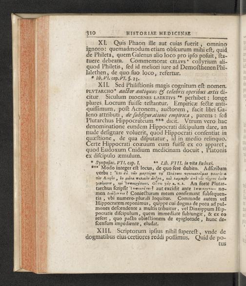 Historiae Medicinae Periodi Primae. Sectio Tertia de Hippocrate Coo Eiusque Vita et doctrinis deque Medicis Coaevis Coum. Cum Synchronismo Aliarum Gentium.