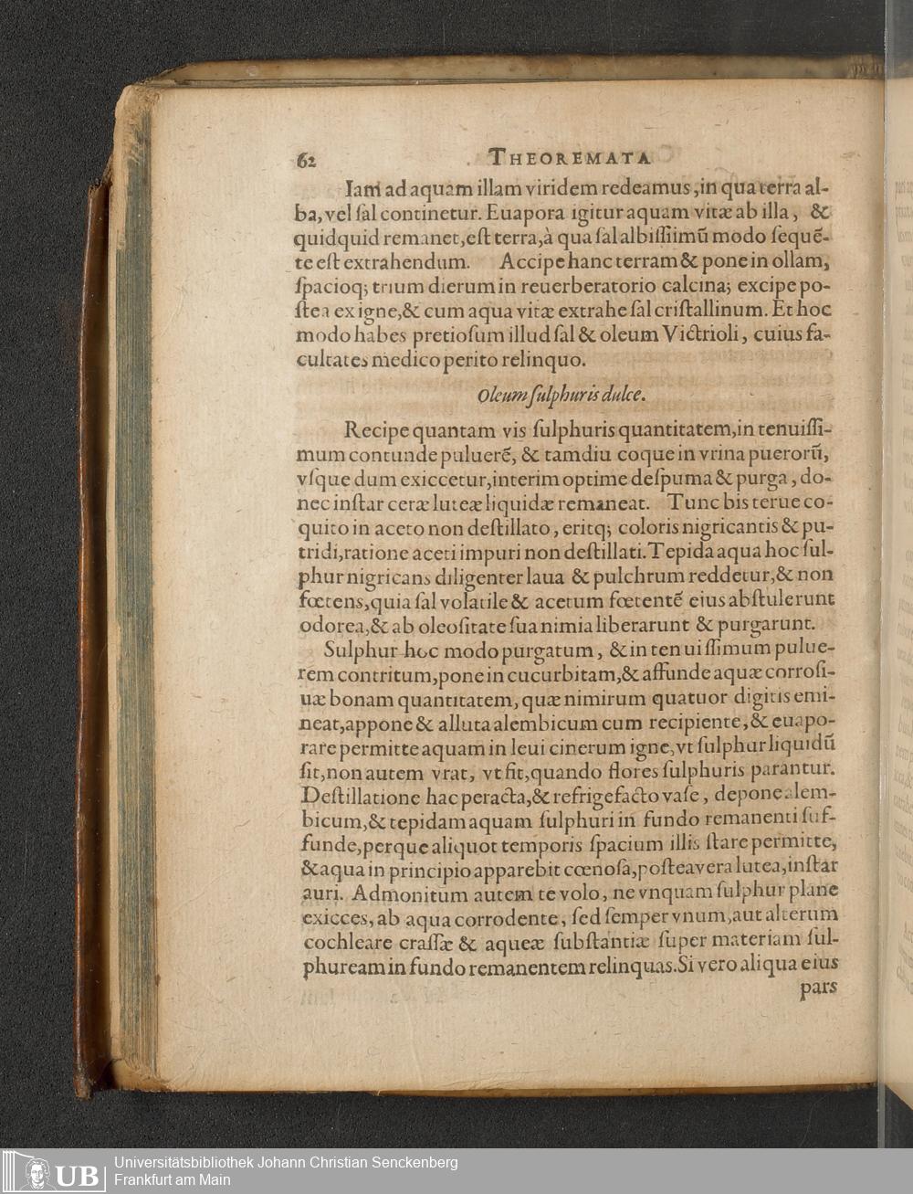 Solis E Pvteo Emergentis: Sive Dissertationis Chymiatechnicæ Libri Tres : In quibus totius operationis Chymicæ I. Methodus Practica. II. Materia lapidis Philosophici & nodus soluendi eius, operandiq[ue]. III. Clauis operum Paracelsi, qua abstrusa explicantur, deficientia supplentur ; Cum præfatione Chymiæ veritatem asserente / Authore Ioanne Rhenano, Medico