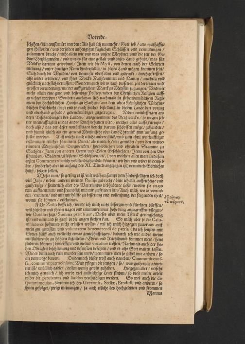 Meißnische Land vnd Berg-Chronica, : Jn welcher ein vollnstendige description des Landes, so zwischen der Elbe, Sala vnd Südödischen Behmischen gebirgen gelegen, So wol der dorinnen begriffenen auch anderer Bergwercken, sampt zugehörigen Metall vn[d] Metallar beschreibungen. : Mit einuorleibten fürnehmen Sächsischen, Düringischen vnd Meißninschen Historien. : Auch nicht wenig Tafeln, Wapen vnd Antiquiteten, derer etliche in Kupffer gestochen. / Gestellet durch Petrum Albinum M. Churf. Sech. Secr. ..