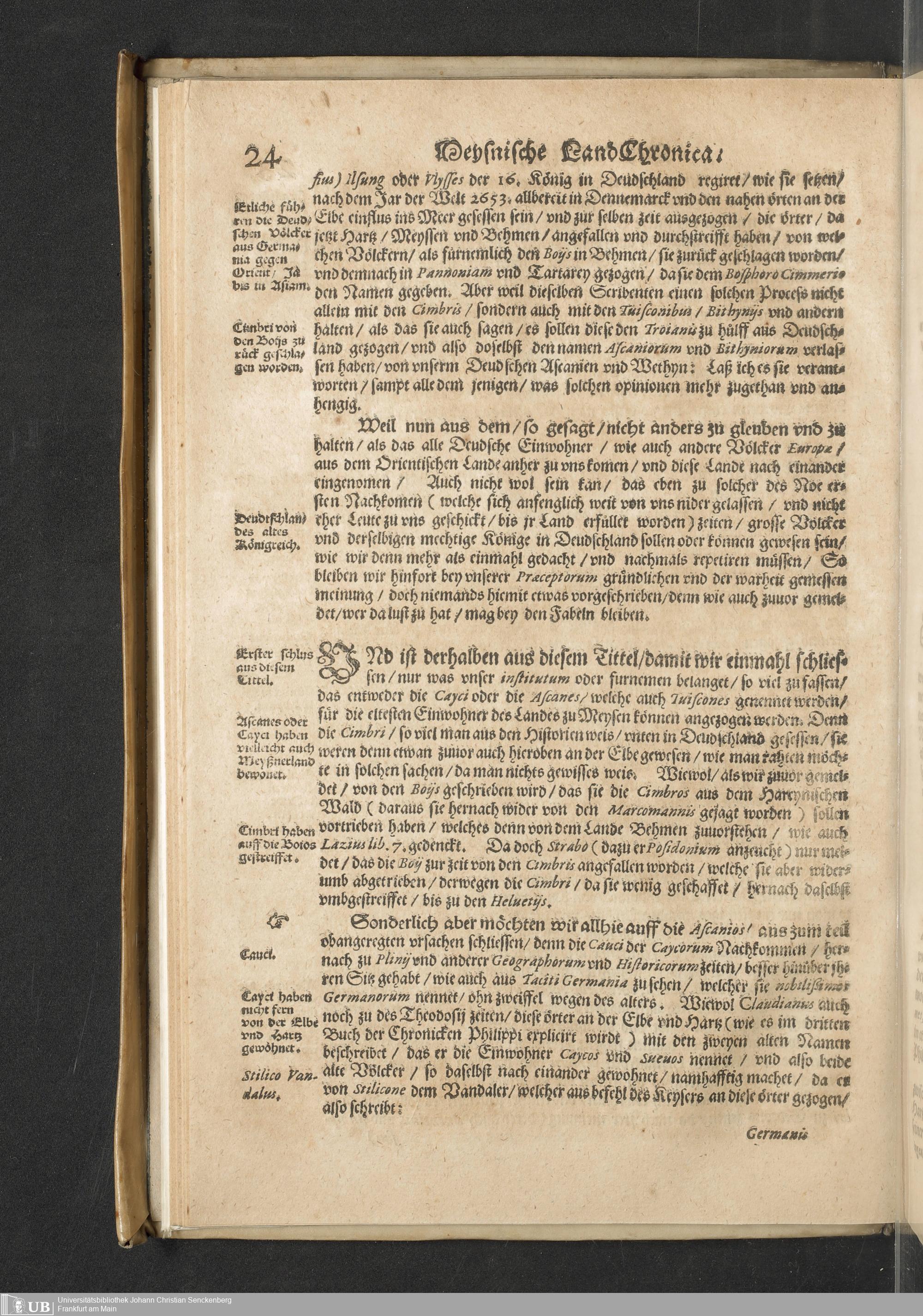 Meißnische Land vnd Berg-Chronica, : Jn welcher ein vollnstendige description des Landes, so zwischen der Elbe, Sala vnd Südödischen Behmischen gebirgen gelegen, So wol der dorinnen begriffenen auch anderer Bergwercken, sampt zugehörigen Metall vn[d] Metallar beschreibungen. : Mit einuorleibten fürnehmen Sächsischen, Düringischen vnd Meißninschen Historien. : Auch nicht wenig Tafeln, Wapen vnd Antiquiteten, derer etliche in Kupffer gestochen. / Gestellet durch Petrum Albinum M. Churf. Sech. Secr. ..