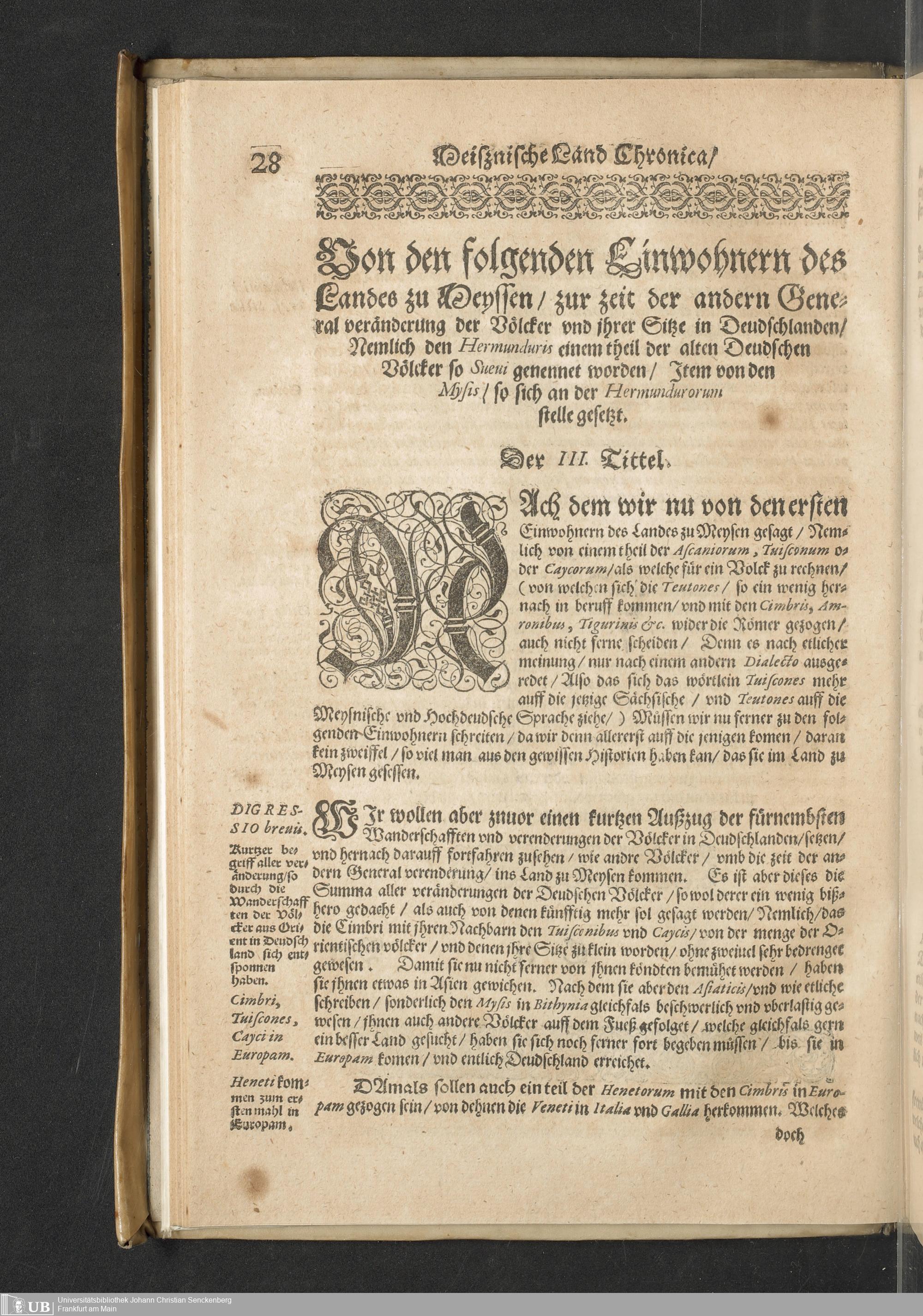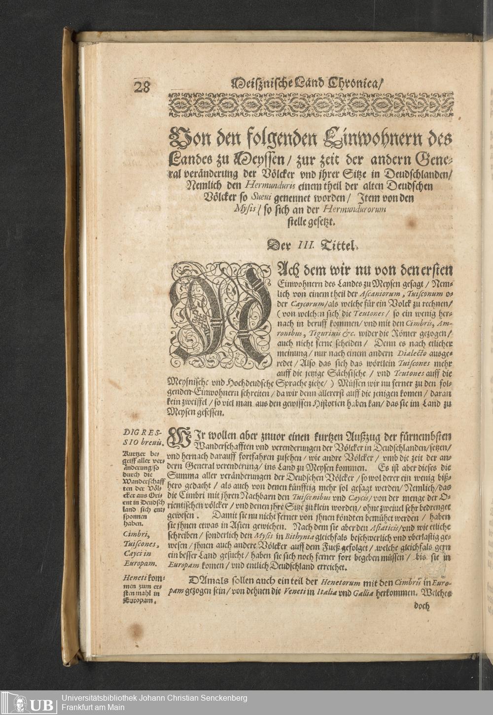 Meißnische Land vnd Berg-Chronica, : Jn welcher ein vollnstendige description des Landes, so zwischen der Elbe, Sala vnd Südödischen Behmischen gebirgen gelegen, So wol der dorinnen begriffenen auch anderer Bergwercken, sampt zugehörigen Metall vn[d] Metallar beschreibungen. : Mit einuorleibten fürnehmen Sächsischen, Düringischen vnd Meißninschen Historien. : Auch nicht wenig Tafeln, Wapen vnd Antiquiteten, derer etliche in Kupffer gestochen. / Gestellet durch Petrum Albinum M. Churf. Sech. Secr. ..