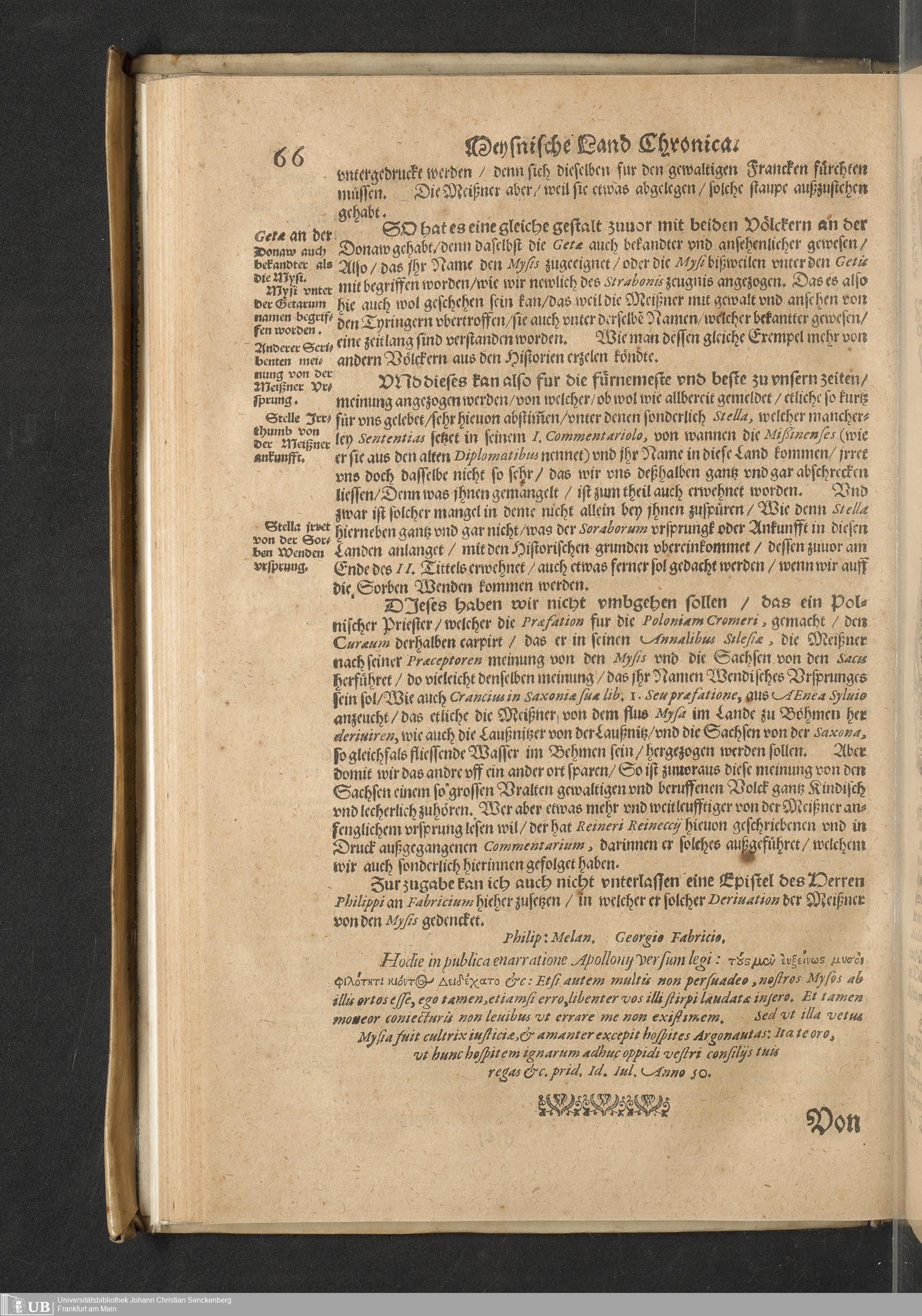 Meißnische Land vnd Berg-Chronica, : Jn welcher ein vollnstendige description des Landes, so zwischen der Elbe, Sala vnd Südödischen Behmischen gebirgen gelegen, So wol der dorinnen begriffenen auch anderer Bergwercken, sampt zugehörigen Metall vn[d] Metallar beschreibungen. : Mit einuorleibten fürnehmen Sächsischen, Düringischen vnd Meißninschen Historien. : Auch nicht wenig Tafeln, Wapen vnd Antiquiteten, derer etliche in Kupffer gestochen. / Gestellet durch Petrum Albinum M. Churf. Sech. Secr. ..