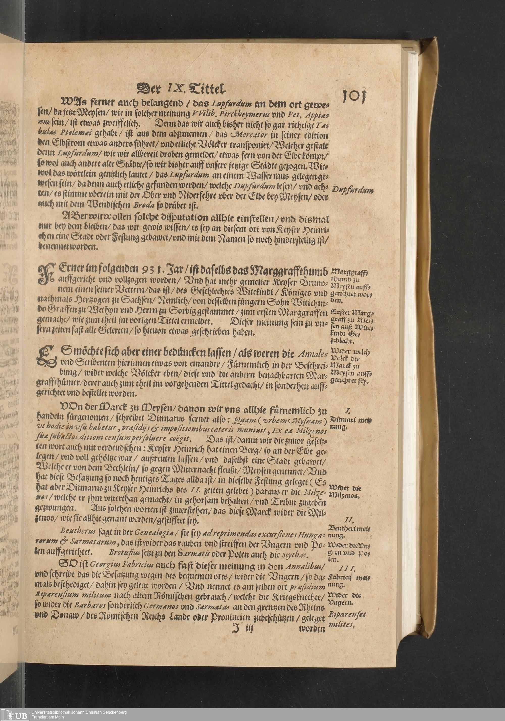 Meißnische Land vnd Berg-Chronica, : Jn welcher ein vollnstendige description des Landes, so zwischen der Elbe, Sala vnd Südödischen Behmischen gebirgen gelegen, So wol der dorinnen begriffenen auch anderer Bergwercken, sampt zugehörigen Metall vn[d] Metallar beschreibungen. : Mit einuorleibten fürnehmen Sächsischen, Düringischen vnd Meißninschen Historien. : Auch nicht wenig Tafeln, Wapen vnd Antiquiteten, derer etliche in Kupffer gestochen. / Gestellet durch Petrum Albinum M. Churf. Sech. Secr. ..