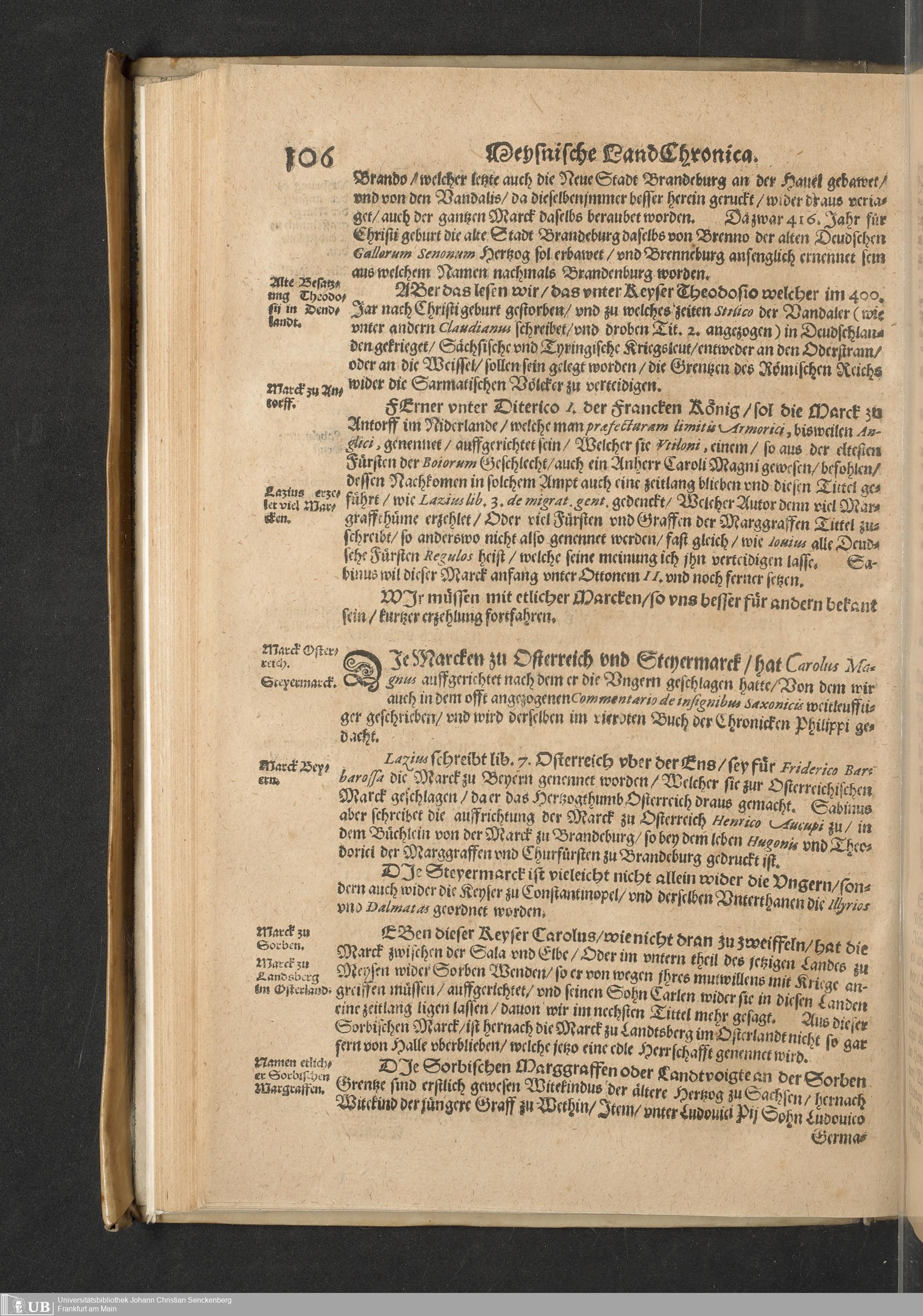 Meißnische Land vnd Berg-Chronica, : Jn welcher ein vollnstendige description des Landes, so zwischen der Elbe, Sala vnd Südödischen Behmischen gebirgen gelegen, So wol der dorinnen begriffenen auch anderer Bergwercken, sampt zugehörigen Metall vn[d] Metallar beschreibungen. : Mit einuorleibten fürnehmen Sächsischen, Düringischen vnd Meißninschen Historien. : Auch nicht wenig Tafeln, Wapen vnd Antiquiteten, derer etliche in Kupffer gestochen. / Gestellet durch Petrum Albinum M. Churf. Sech. Secr. ..