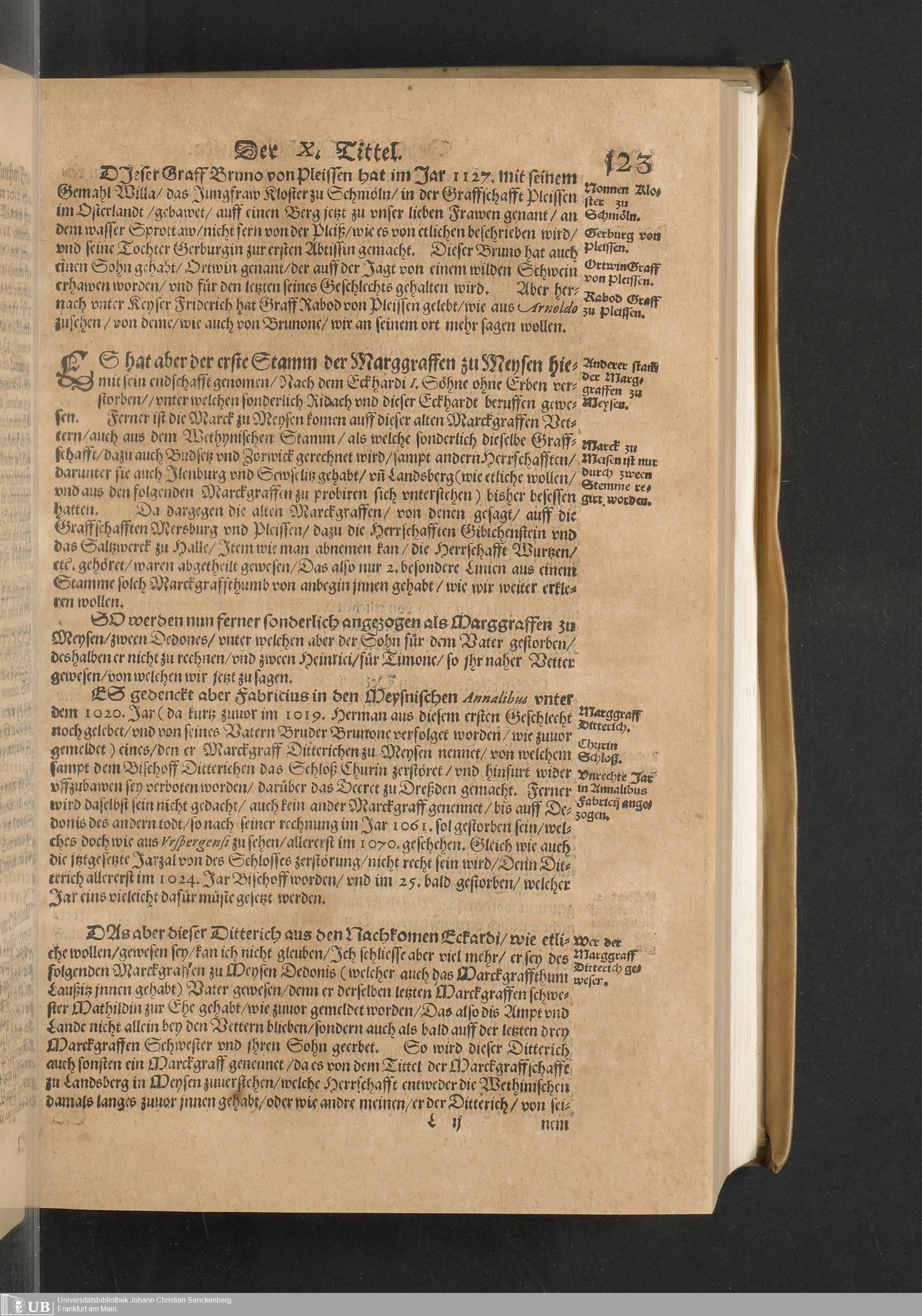 Meißnische Land vnd Berg-Chronica, : Jn welcher ein vollnstendige description des Landes, so zwischen der Elbe, Sala vnd Südödischen Behmischen gebirgen gelegen, So wol der dorinnen begriffenen auch anderer Bergwercken, sampt zugehörigen Metall vn[d] Metallar beschreibungen. : Mit einuorleibten fürnehmen Sächsischen, Düringischen vnd Meißninschen Historien. : Auch nicht wenig Tafeln, Wapen vnd Antiquiteten, derer etliche in Kupffer gestochen. / Gestellet durch Petrum Albinum M. Churf. Sech. Secr. ..