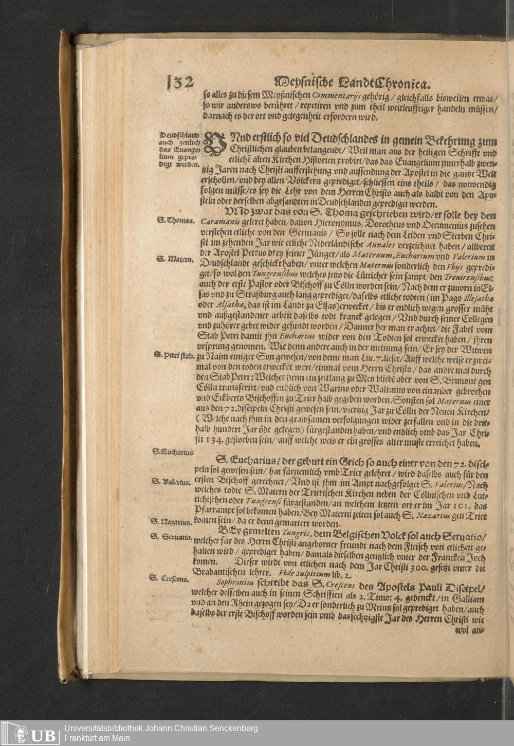 Meißnische Land vnd Berg-Chronica, : Jn welcher ein vollnstendige description des Landes, so zwischen der Elbe, Sala vnd Südödischen Behmischen gebirgen gelegen, So wol der dorinnen begriffenen auch anderer Bergwercken, sampt zugehörigen Metall vn[d] Metallar beschreibungen. : Mit einuorleibten fürnehmen Sächsischen, Düringischen vnd Meißninschen Historien. : Auch nicht wenig Tafeln, Wapen vnd Antiquiteten, derer etliche in Kupffer gestochen. / Gestellet durch Petrum Albinum M. Churf. Sech. Secr. ..