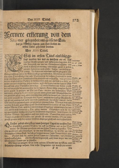 Meißnische Land vnd Berg-Chronica, : Jn welcher ein vollnstendige description des Landes, so zwischen der Elbe, Sala vnd Südödischen Behmischen gebirgen gelegen, So wol der dorinnen begriffenen auch anderer Bergwercken, sampt zugehörigen Metall vn[d] Metallar beschreibungen. : Mit einuorleibten fürnehmen Sächsischen, Düringischen vnd Meißninschen Historien. : Auch nicht wenig Tafeln, Wapen vnd Antiquiteten, derer etliche in Kupffer gestochen. / Gestellet durch Petrum Albinum M. Churf. Sech. Secr. ..