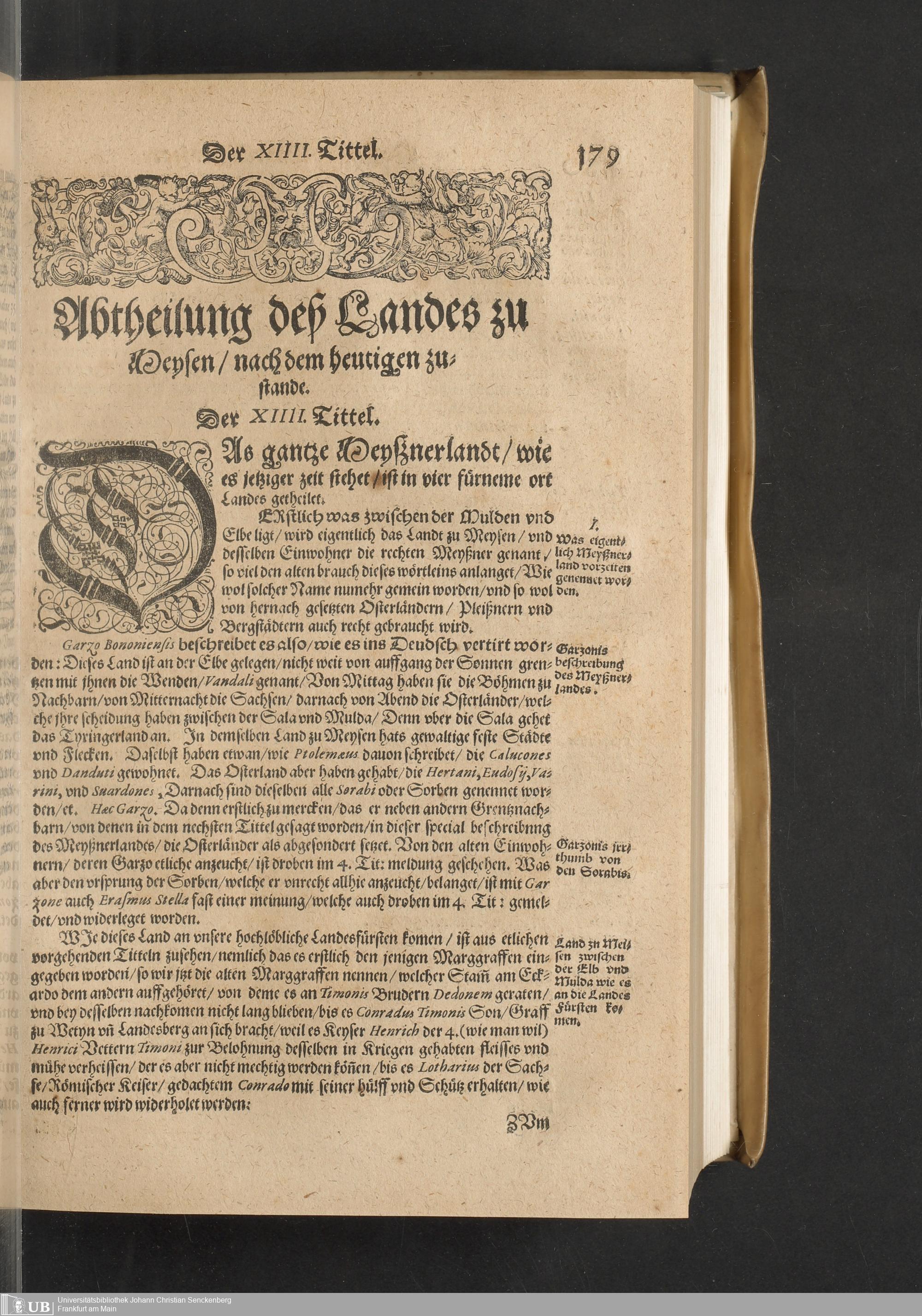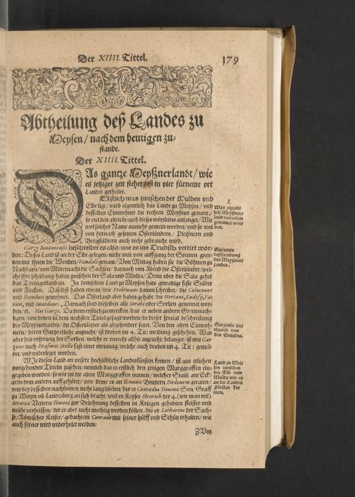 Meißnische Land vnd Berg-Chronica, : Jn welcher ein vollnstendige description des Landes, so zwischen der Elbe, Sala vnd Südödischen Behmischen gebirgen gelegen, So wol der dorinnen begriffenen auch anderer Bergwercken, sampt zugehörigen Metall vn[d] Metallar beschreibungen. : Mit einuorleibten fürnehmen Sächsischen, Düringischen vnd Meißninschen Historien. : Auch nicht wenig Tafeln, Wapen vnd Antiquiteten, derer etliche in Kupffer gestochen. / Gestellet durch Petrum Albinum M. Churf. Sech. Secr. ..