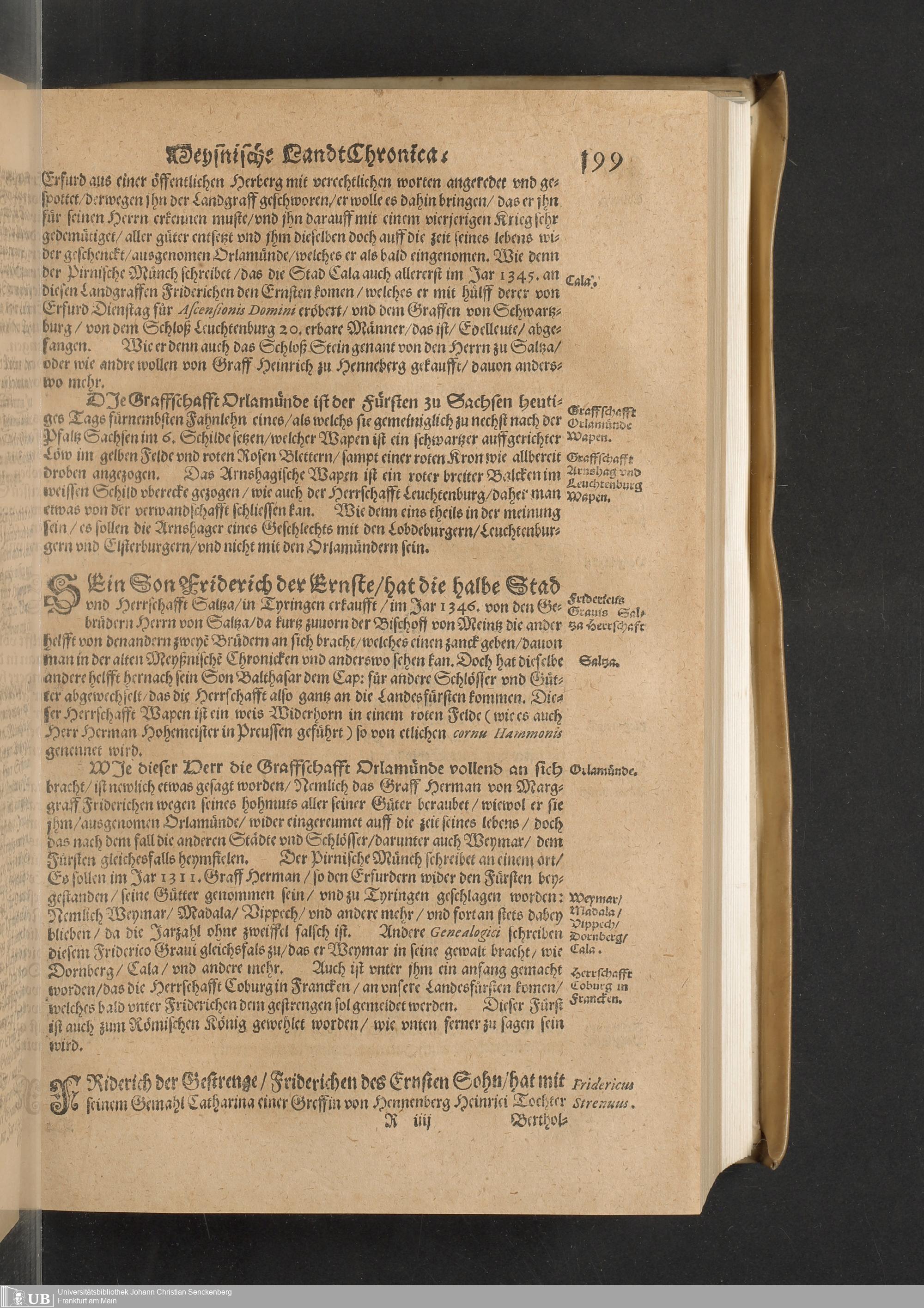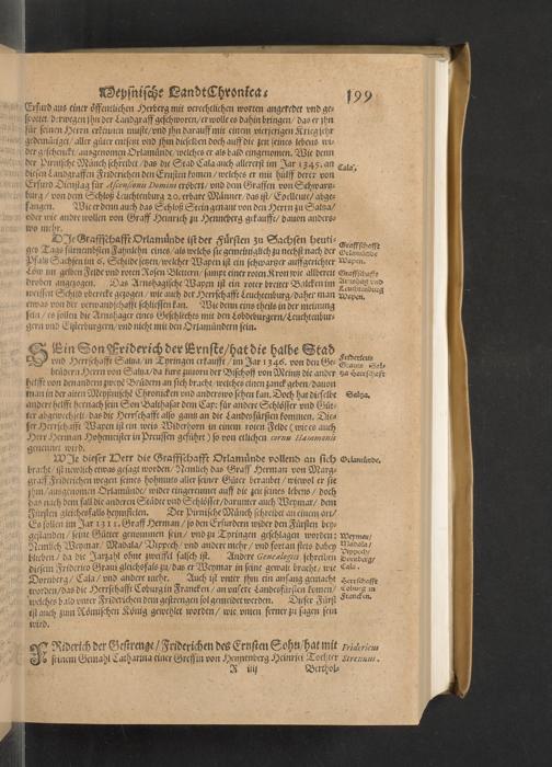 Meißnische Land vnd Berg-Chronica, : Jn welcher ein vollnstendige description des Landes, so zwischen der Elbe, Sala vnd Südödischen Behmischen gebirgen gelegen, So wol der dorinnen begriffenen auch anderer Bergwercken, sampt zugehörigen Metall vn[d] Metallar beschreibungen. : Mit einuorleibten fürnehmen Sächsischen, Düringischen vnd Meißninschen Historien. : Auch nicht wenig Tafeln, Wapen vnd Antiquiteten, derer etliche in Kupffer gestochen. / Gestellet durch Petrum Albinum M. Churf. Sech. Secr. ..