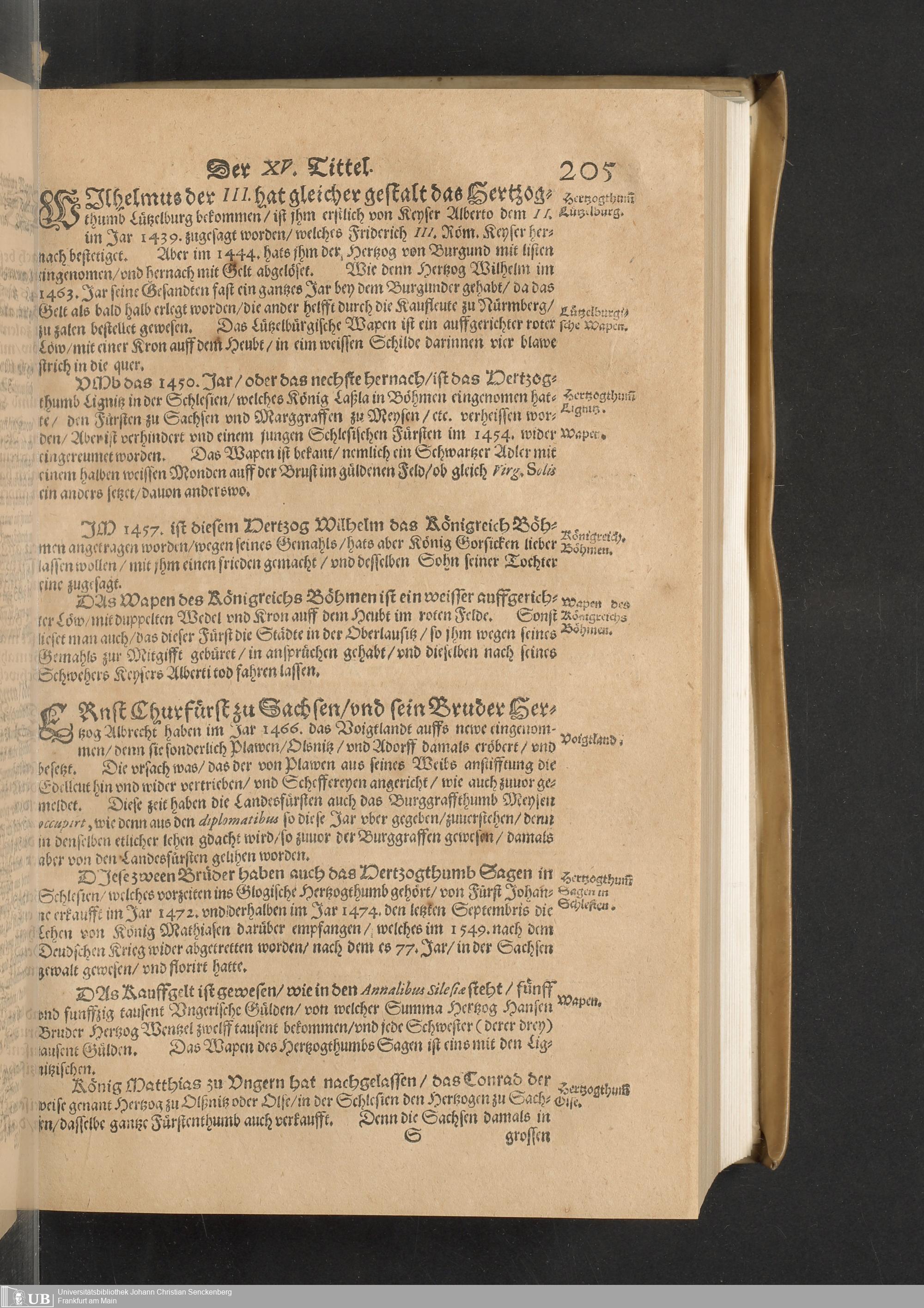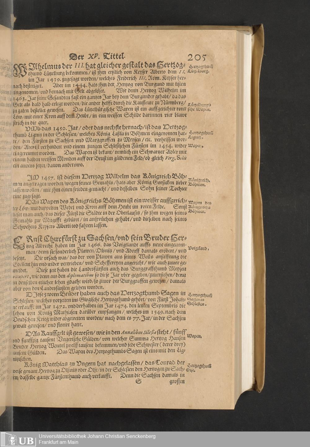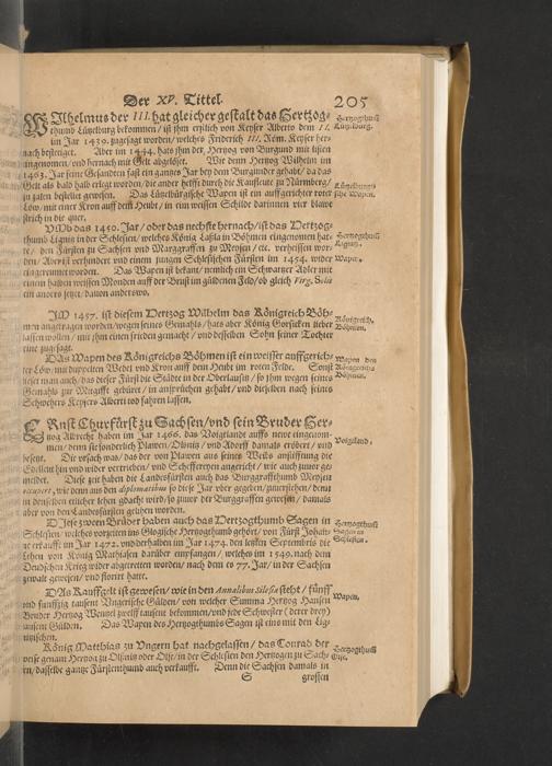 Meißnische Land vnd Berg-Chronica, : Jn welcher ein vollnstendige description des Landes, so zwischen der Elbe, Sala vnd Südödischen Behmischen gebirgen gelegen, So wol der dorinnen begriffenen auch anderer Bergwercken, sampt zugehörigen Metall vn[d] Metallar beschreibungen. : Mit einuorleibten fürnehmen Sächsischen, Düringischen vnd Meißninschen Historien. : Auch nicht wenig Tafeln, Wapen vnd Antiquiteten, derer etliche in Kupffer gestochen. / Gestellet durch Petrum Albinum M. Churf. Sech. Secr. ..