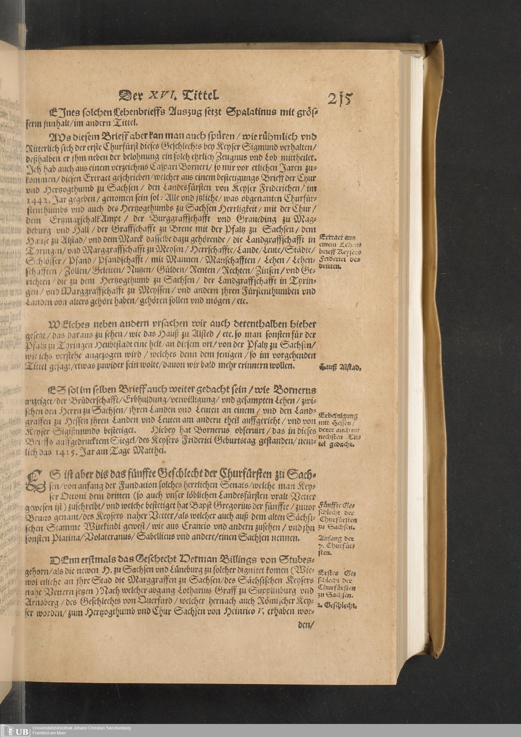 Meißnische Land vnd Berg-Chronica, : Jn welcher ein vollnstendige description des Landes, so zwischen der Elbe, Sala vnd Südödischen Behmischen gebirgen gelegen, So wol der dorinnen begriffenen auch anderer Bergwercken, sampt zugehörigen Metall vn[d] Metallar beschreibungen. : Mit einuorleibten fürnehmen Sächsischen, Düringischen vnd Meißninschen Historien. : Auch nicht wenig Tafeln, Wapen vnd Antiquiteten, derer etliche in Kupffer gestochen. / Gestellet durch Petrum Albinum M. Churf. Sech. Secr. ..