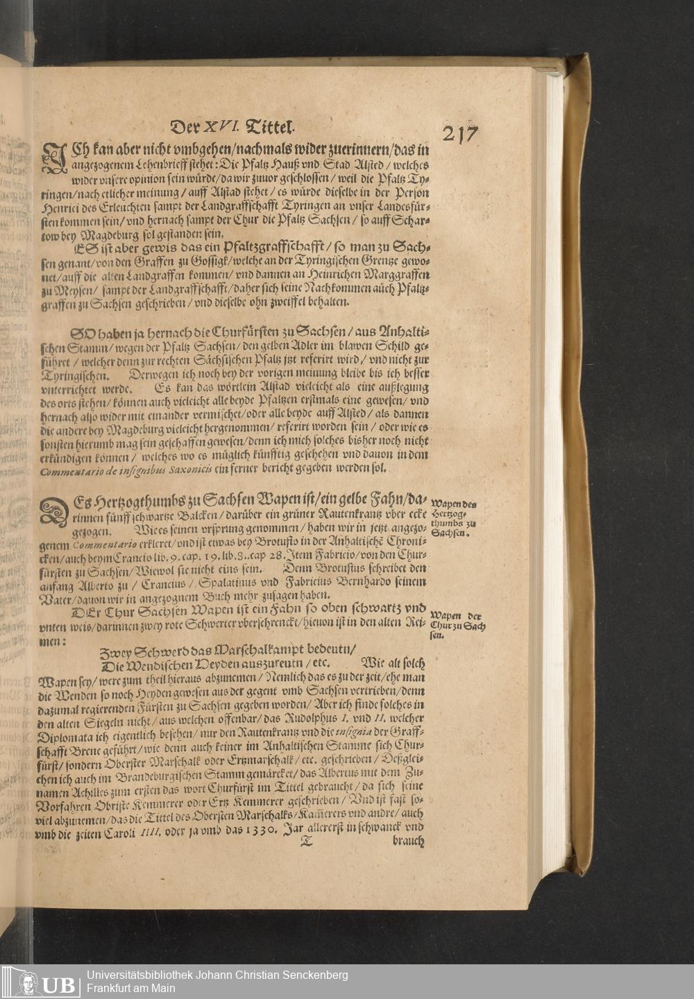 Meißnische Land vnd Berg-Chronica, : Jn welcher ein vollnstendige description des Landes, so zwischen der Elbe, Sala vnd Südödischen Behmischen gebirgen gelegen, So wol der dorinnen begriffenen auch anderer Bergwercken, sampt zugehörigen Metall vn[d] Metallar beschreibungen. : Mit einuorleibten fürnehmen Sächsischen, Düringischen vnd Meißninschen Historien. : Auch nicht wenig Tafeln, Wapen vnd Antiquiteten, derer etliche in Kupffer gestochen. / Gestellet durch Petrum Albinum M. Churf. Sech. Secr. ..