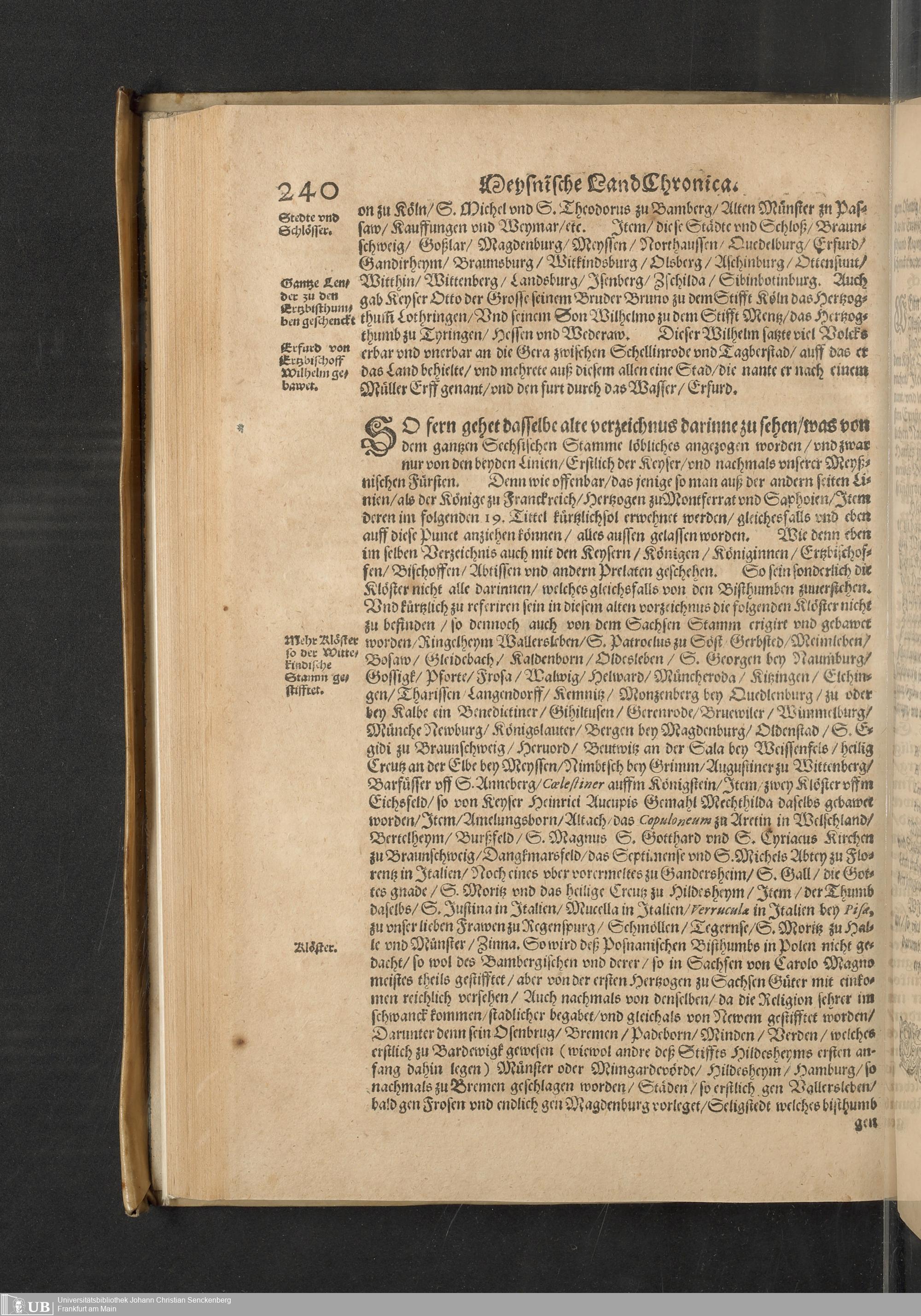 Meißnische Land vnd Berg-Chronica, : Jn welcher ein vollnstendige description des Landes, so zwischen der Elbe, Sala vnd Südödischen Behmischen gebirgen gelegen, So wol der dorinnen begriffenen auch anderer Bergwercken, sampt zugehörigen Metall vn[d] Metallar beschreibungen. : Mit einuorleibten fürnehmen Sächsischen, Düringischen vnd Meißninschen Historien. : Auch nicht wenig Tafeln, Wapen vnd Antiquiteten, derer etliche in Kupffer gestochen. / Gestellet durch Petrum Albinum M. Churf. Sech. Secr. ..