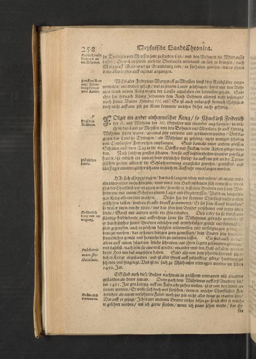 Meißnische Land vnd Berg-Chronica, : Jn welcher ein vollnstendige description des Landes, so zwischen der Elbe, Sala vnd Südödischen Behmischen gebirgen gelegen, So wol der dorinnen begriffenen auch anderer Bergwercken, sampt zugehörigen Metall vn[d] Metallar beschreibungen. : Mit einuorleibten fürnehmen Sächsischen, Düringischen vnd Meißninschen Historien. : Auch nicht wenig Tafeln, Wapen vnd Antiquiteten, derer etliche in Kupffer gestochen. / Gestellet durch Petrum Albinum M. Churf. Sech. Secr. ..