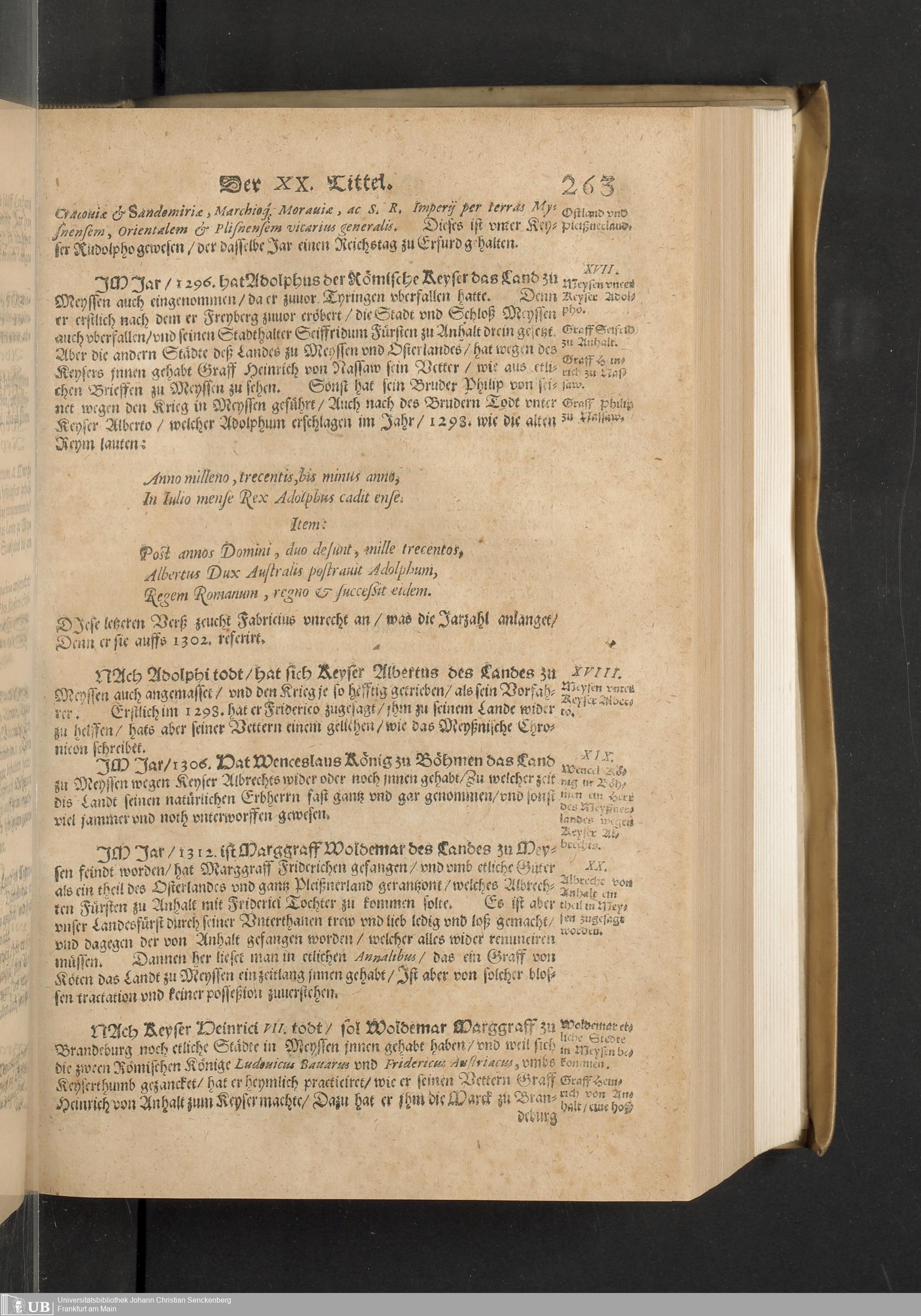Meißnische Land vnd Berg-Chronica, : Jn welcher ein vollnstendige description des Landes, so zwischen der Elbe, Sala vnd Südödischen Behmischen gebirgen gelegen, So wol der dorinnen begriffenen auch anderer Bergwercken, sampt zugehörigen Metall vn[d] Metallar beschreibungen. : Mit einuorleibten fürnehmen Sächsischen, Düringischen vnd Meißninschen Historien. : Auch nicht wenig Tafeln, Wapen vnd Antiquiteten, derer etliche in Kupffer gestochen. / Gestellet durch Petrum Albinum M. Churf. Sech. Secr. ..