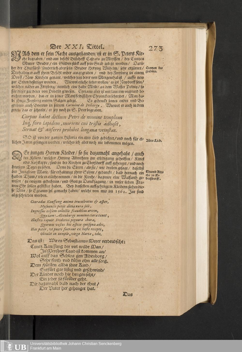 Meißnische Land vnd Berg-Chronica, : Jn welcher ein vollnstendige description des Landes, so zwischen der Elbe, Sala vnd Südödischen Behmischen gebirgen gelegen, So wol der dorinnen begriffenen auch anderer Bergwercken, sampt zugehörigen Metall vn[d] Metallar beschreibungen. : Mit einuorleibten fürnehmen Sächsischen, Düringischen vnd Meißninschen Historien. : Auch nicht wenig Tafeln, Wapen vnd Antiquiteten, derer etliche in Kupffer gestochen. / Gestellet durch Petrum Albinum M. Churf. Sech. Secr. ..