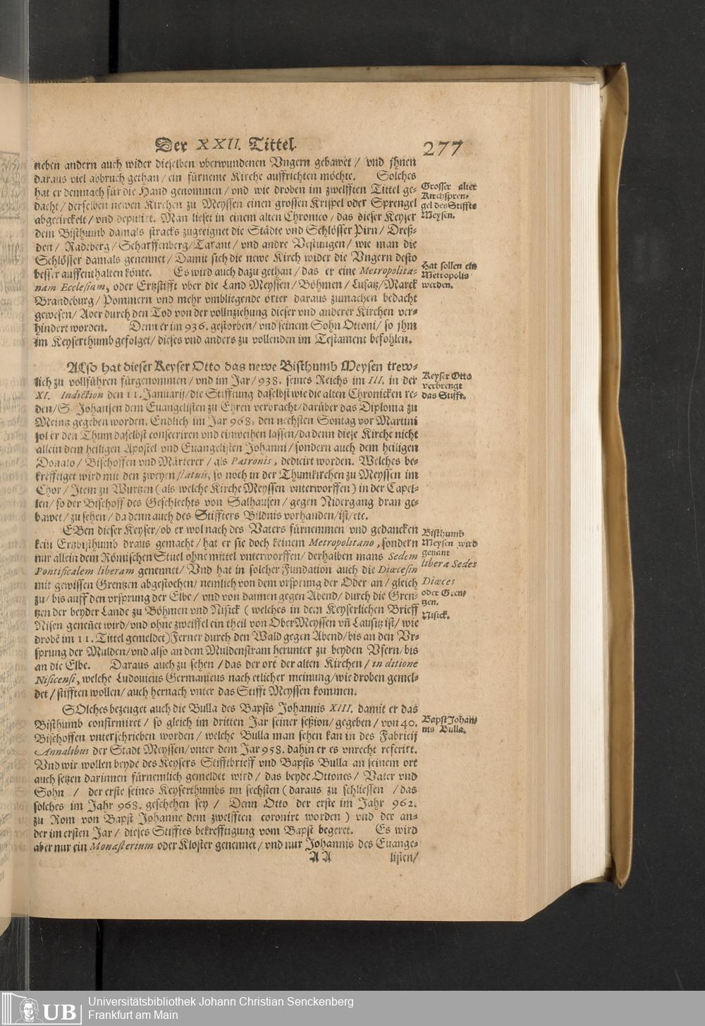Meißnische Land vnd Berg-Chronica, : Jn welcher ein vollnstendige description des Landes, so zwischen der Elbe, Sala vnd Südödischen Behmischen gebirgen gelegen, So wol der dorinnen begriffenen auch anderer Bergwercken, sampt zugehörigen Metall vn[d] Metallar beschreibungen. : Mit einuorleibten fürnehmen Sächsischen, Düringischen vnd Meißninschen Historien. : Auch nicht wenig Tafeln, Wapen vnd Antiquiteten, derer etliche in Kupffer gestochen. / Gestellet durch Petrum Albinum M. Churf. Sech. Secr. ..