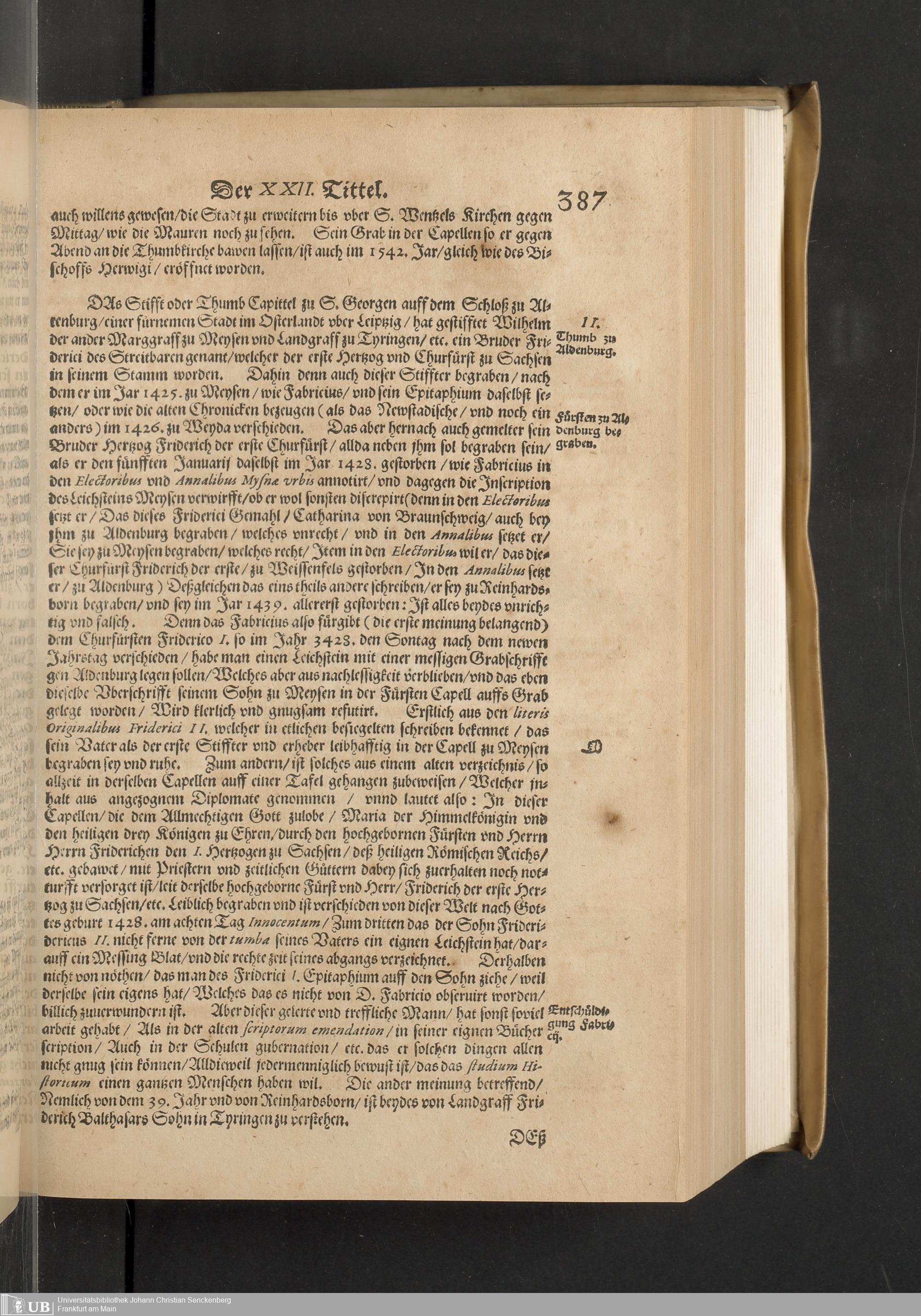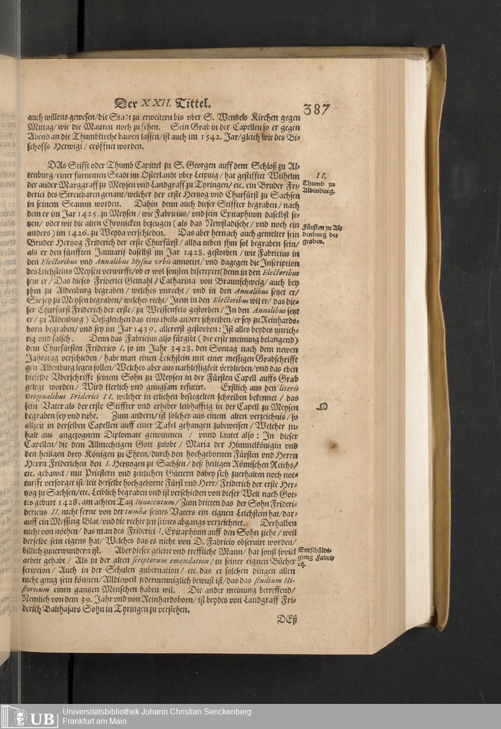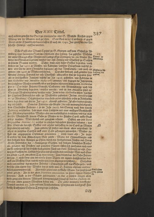 Meißnische Land vnd Berg-Chronica, : Jn welcher ein vollnstendige description des Landes, so zwischen der Elbe, Sala vnd Südödischen Behmischen gebirgen gelegen, So wol der dorinnen begriffenen auch anderer Bergwercken, sampt zugehörigen Metall vn[d] Metallar beschreibungen. : Mit einuorleibten fürnehmen Sächsischen, Düringischen vnd Meißninschen Historien. : Auch nicht wenig Tafeln, Wapen vnd Antiquiteten, derer etliche in Kupffer gestochen. / Gestellet durch Petrum Albinum M. Churf. Sech. Secr. ..