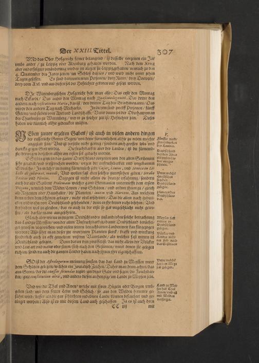 Meißnische Land vnd Berg-Chronica, : Jn welcher ein vollnstendige description des Landes, so zwischen der Elbe, Sala vnd Südödischen Behmischen gebirgen gelegen, So wol der dorinnen begriffenen auch anderer Bergwercken, sampt zugehörigen Metall vn[d] Metallar beschreibungen. : Mit einuorleibten fürnehmen Sächsischen, Düringischen vnd Meißninschen Historien. : Auch nicht wenig Tafeln, Wapen vnd Antiquiteten, derer etliche in Kupffer gestochen. / Gestellet durch Petrum Albinum M. Churf. Sech. Secr. ..